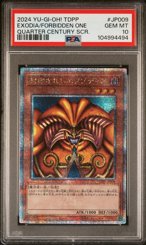πππ EXODIA THE FORBIDDEN ONE TDPP-JP009 PSA 10 YUGIOH 2024 JAPANESE SECRET RARE This card is officially graded.Combined shipping is available for all items.Please enquire if you require additional information/photos about the item.Follow me on Instagram! πππ EXODIA THE FORBIDDEN ONE TDPP-JP009 PSA 10 YUGIOH 2024 JAPANESE SECRET RARE This card is officially graded. Combined shipping is available for all items. Please enquire if you require additional information/photos about the item. Follow me on Instagram! Γ Γ Γ Γ Γ Γ Buy now and save! Shipping info Click the Shipping & Payments tab above the listing description for more info Click the Shipping & Payments tab above the listing description for more info! Additional delivery notes PICK UP OPTION Sorry, our items are NOT available for pick-up. PAYMENT Immediate payment is required upon selecting "Buy It Now" or upon checking out through the cart. We accept payment via All Major Credit Cards (Visa, Mastercard, AMEX, Discover), Google Pay, PayPal, & Apple Pay (on mobile & eBay App). Thank you for shopping with us on eBay! Additional Information No additional information at this time Ask seller a question You might also like πππ GALAR FRIENDS 258/184 PSA 10 POKEMON VMAX CLIMAX JAPANESE FULL ART SR πππ YUGIOH - PSA 10 - CYBER DRAGON INFINITY - JP021 - PRISMATIC ALT ART JAPAN πππ YUGIOH - PSA 10 - BLUE EYES WHITE DRAGON - JP012 - PRISMATIC GOD BOX JAPA πππ YUGIOH - PSA 10 - FORTUNE LADY EVERY - JP038 - 20TH SECRET RARE JAPANESE Contact To contact our Customer Service Team, simply click the button here and our Customer Service team will be happy to assist. Ask seller a question Β© PokemonSteve Shipping & Payments Click the Shipping & Payments tab above the listing description for more info Payment Accepted Payment Methods Immediate payment is required upon selecting "Buy It Now" or upon checking out through the cart. We accept payment via All Major Credit Cards (Visa, Mastercard, AMEX, Discover), Google Pay, PayPal, & Apple Pay (on mobile & eBay App). Thank you for shopping with us on eBay! Returns Returns are accepted Items must be returned within 30 days of the auction ending Seller will pay for return shipping. eBay integration by