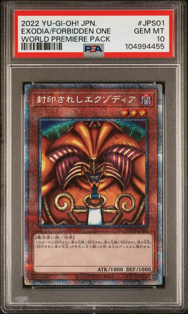 πππ EXODIA THE FORBIDDEN ONE WPP3-JPS01 PSA 10 YU-GI-OH! WORLD PREMIERE PACK 2022 JAPANESE This card is officially graded.Combined shipping is available for all items.Please enquire if you require additional information/photos about the item.Follow me on Instagram! πππ EXODIA THE FORBIDDEN ONE WPP3-JPS01 PSA 10 YU-GI-OH! WORLD PREMIERE PACK 2022 JAPANESE This card is officially graded. Combined shipping is available for all items. Please enquire if you require additional information/photos about the item. Follow me on Instagram! Γ Γ Γ Γ Γ Γ Buy now and save! Shipping info Click the Shipping & Payments tab above the listing description for more info Click the Shipping & Payments tab above the listing description for more info! Additional delivery notes PICK UP OPTION Sorry, our items are NOT available for pick-up. PAYMENT Immediate payment is required upon selecting "Buy It Now" or upon checking out through the cart. We accept payment via All Major Credit Cards (Visa, Mastercard, AMEX, Discover), Google Pay, PayPal, & Apple Pay (on mobile & eBay App). Thank you for shopping with us on eBay! Additional Information No additional information at this time Ask seller a question You might also like πππ YUGIOH - PSA 10 - BLUE EYES ABYSS DRAGON - JP005 - JAPANESE LGB SPECIAL P πππ YUGIOH - PSA 10 - FORTUNE LADY EVERY - JP038 - 20TH SECRET RARE JAPANESE πππ SEALEO 017/090 PSA 10 POKEMON BONDS END TIME PT2 JAPANESE πππ ENTEI RAIKOU LEGEND 063 064/080 PSA 10 POKEMON REVIVING L2 JAPANESE SET O Contact To contact our Customer Service Team, simply click the button here and our Customer Service team will be happy to assist. Ask seller a question Β© PokemonSteve Shipping & Payments Click the Shipping & Payments tab above the listing description for more info Payment Accepted Payment Methods Immediate payment is required upon selecting "Buy It Now" or upon checking out through the cart. We accept payment via All Major Credit Cards (Visa, Mastercard, AMEX, Discover), Google Pay, PayPal, & Apple Pay (on mobile & eBay App). Thank you for shopping with us on eBay! Returns Returns are accepted Items must be returned within 30 days of the auction ending Seller will pay for return shipping. eBay integration by