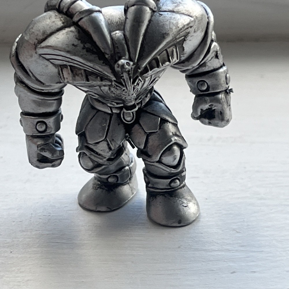 This is a rare figure of the legendary Exodia from the popular anime and manga series Yu-Gi-Oh! The figure stands at 2 inches tall and features intricate details and a silver finish. It is made of high-quality plastic and was manufactured in China. The figure is a perfect addition to any Yu-Gi-Oh! fan's collection and would make a great gift. It is produced by Mattel, a well-respected brand in the toy industry. The figure's packaging includes a picture of the character and is sure to impress.