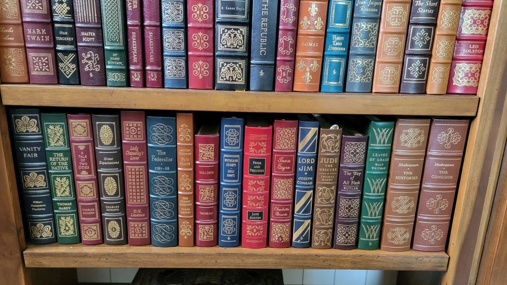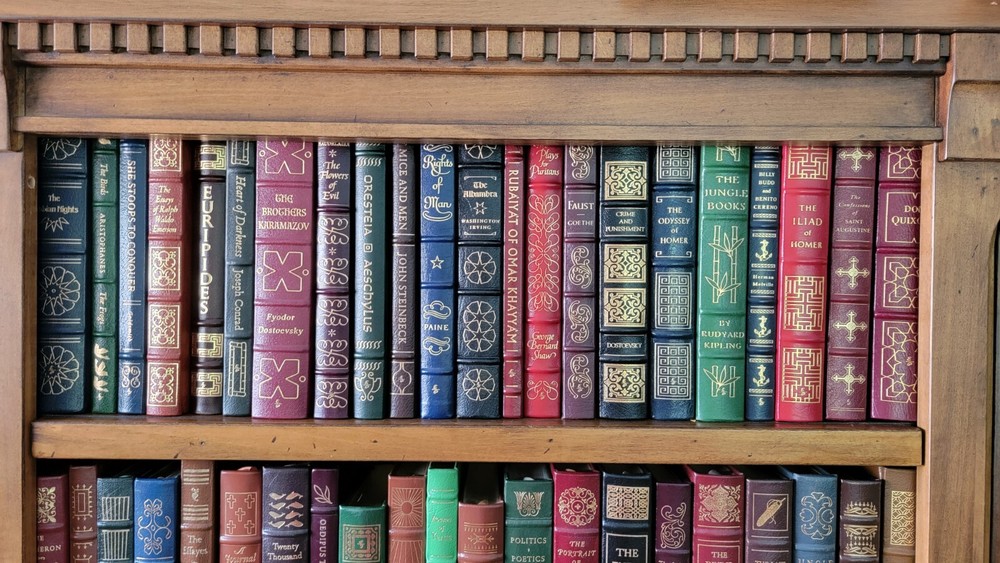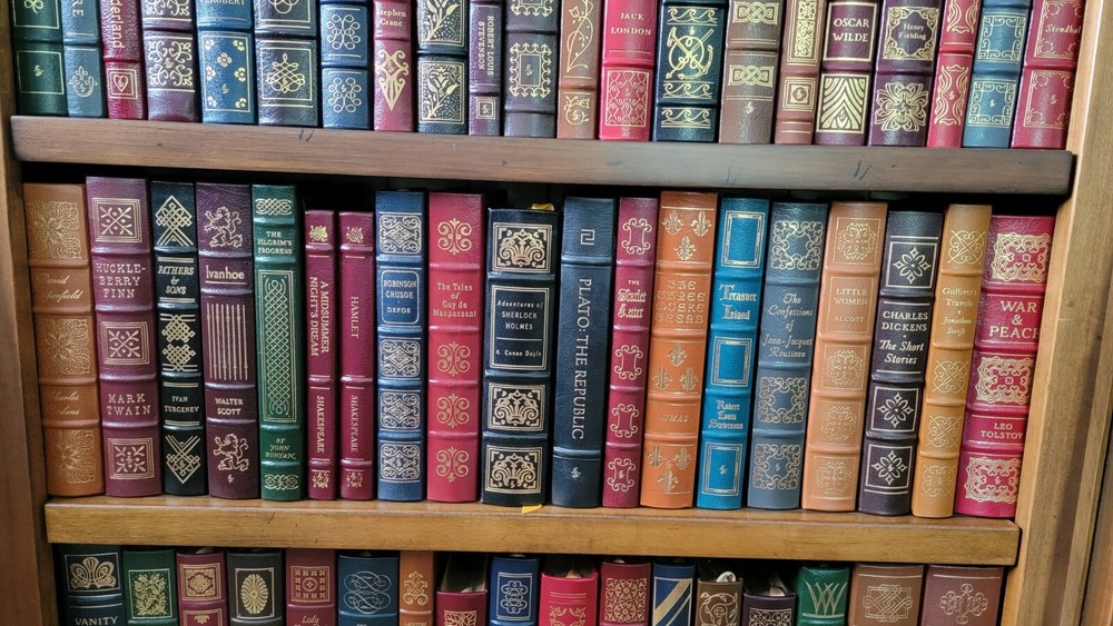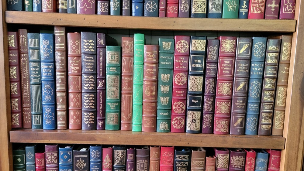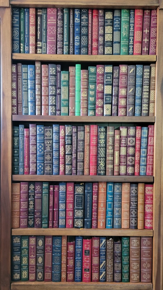 100 Greatest Books Ever Written. 100 volume set from the publisher Easton Press. This set will be a beautiful and decorative addition to your library. All 100 volumes are in Like New condition with only a few showing minor shelf wear. Most books have no personalization inside but some may have a nameplate or personalized stamp. These books were mostly used for display purposes. Sold as-is, any minor shelf-wear is commensurate with the age. Please see photos for details. This set now retails for $7,000 and would take over 8 years to accumulate at one book a month. Now is your chance to own this impressive set immediately at a discount! Shipping: Books will be individually wrapped and shipped in several smaller boxes through FedEx to ensure they arrive safely. All packages will be insured and great care will be made to protect the book edges and gilt. Please read my reviews for extra assurance in my shipping practices. Features of this Easton Press Collection include: All books are fully and tightly bound in genuine leather 22kt gold accents deeply inlaid on the "hubbed" spines. Heavy duty binding boards enhance the book’s durability. Superbly printed on acid-neutral paper that lasts for generations. Sewn pages – not simply glued as in ordinary books. Handsome moiré endpages and a satin-ribbon page marker. All Edge Guilt (AEG) page ends. Printed & bound in the USA using imported materials. *Disclaimer* As noted above, some books may have minor shelf wear that is commensurate with age. Aside from this, the books are primarily in like new condition and many have never been read. This collection is sold as is. It is recommended that you ask all necessary questions and review the description/photos prior to making a purchase. Volumes Included in 100 Greatest Books Ever Written, Easton Press: A Farewell to Arms A Midsummer Night’s Dream A Portrait of the Artist as a Young Man A Tale of Two Cities Aesop’s Fables Alice in Wonderland Autobiography of Benjamin Franklin Billy Budd/ Benito Cereno Brave New World Brothers Grimm’s Fairy Tales Candide Collected Poems John Keats Crime and Punishment David Copperfield Charles Dickens Short Stories Don Quixote Essays Ralph Waldo Essays/ Effayes Euripides Fathers and Sons Faust Great Expectations Gulliver’s Travels Hamlet Heart of Darkness History of Early Rome Livy Huckleberry Finn Iliad Ivanhoe Jane Eyre John Donne Poems Journal of the Plague Year Jude the Obscure Lady Chatterley’s Lover Leaves of Grass Little Women Lord Jim Madame Bovary Moby-Dick Odyssey Oedipus the King Of Mice and Men Oscar Wilde Short Stories Paradise Lost Poems Yeats Politics & The Poetics Portrait of a Lady Pride and Prejudice Red Badge of Courage Return of the Native Rights of Man Robert Browning Poems Robinson Crusoe She Stoops to Conquer Silas Marner St Augustine Strange Case of Dr Hyde Tales of Mystery and Imagination Tess of the d’Urbervilles The Adventures of Sherlock Holmes The Aeneid The Alhambra The Analects of Confucius The Arabian Nights The Birds, The Frogs The Brothers Karamazov The Canterbury Tales The Comedies - Shakespeare The Confessions Jean Jacques The Decameron The Divine Comedy The Federalist Papers The Flowers of Evil The Histories - Shakespeare The Jungle Books The Last of the Mohicans The Oresteia The Pilgrim’s Progress The Prince The Red and the Black The Republic The Rubaiyat of Omar Khayyam The Scarlet Letter The Sea Wolf The Tales of Guy de Maupassant The Talisman The Three Musketeers The Way of All Flesh Three Plays Henrik Isben Tom Jones Treasure Island Twenty Thousand Leagues under the Sea Two Plays Moliere Two Plays for Puritans Two Plays Chekhov Uncle Tom’s Cabin Vanity Fair Walden War and Peace Wuthering Heights