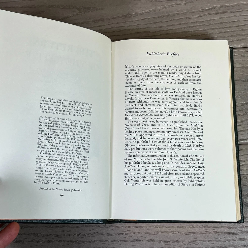Absolutely stunning Easton Press edition—the leather binding and gold accents make it feel like a true collector’s piece. Despite being vintage, it’s in fantastic shape with only minor wear, and the pages are beautifully preserved. Perfect for Hardy fans and book lovers alike! Plus, the seller offers great deals on multiple purchases. Highly recommended!