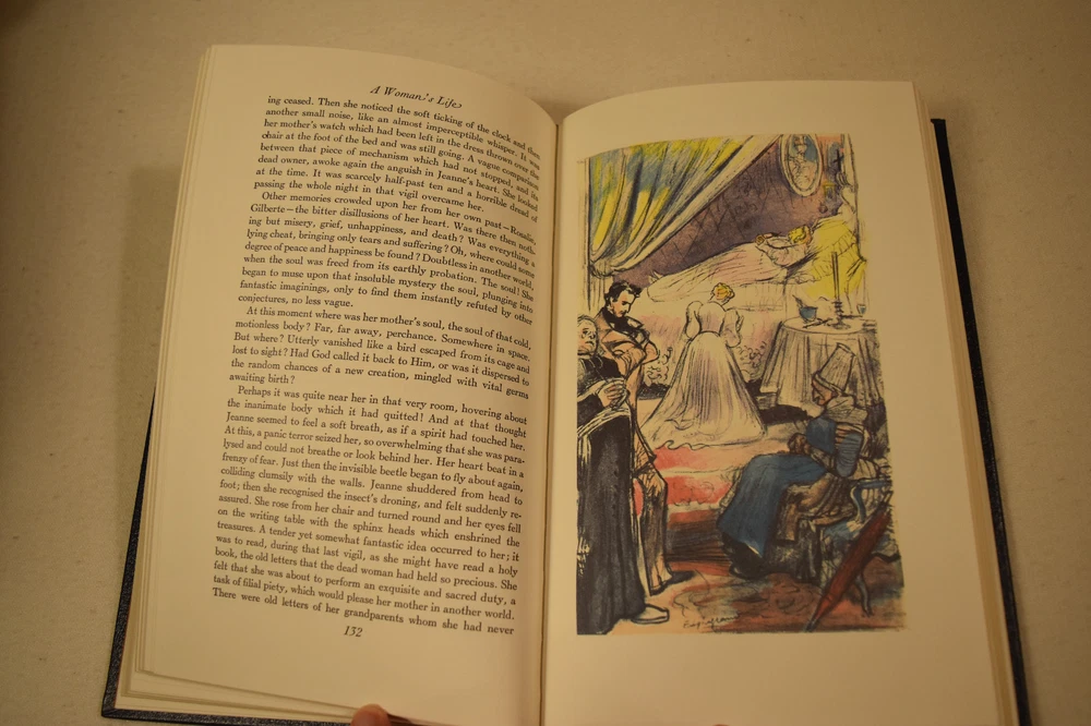 From the Easton Press Famous Editions Collection... A Woman's Life by Guy de Maupassant Illustrated by Edy Legrand Translated by Marjorie Laurie Copyright 1993 by The Easton Press Bound in Premium Full Leather This volume contains all of the classic Easton Press trimmings: Premium Leather Silk Moire Endleaves Distinctive Cover Design Hubbed Spine, Accented in Real 22KT Gold Satin Ribbon Page Marker Gilded Page Edges Long-lasting, High Quality Acid-neutral Paper Smyth-sewn Pages for Strength and Durability Beautiful Illustrations A very scarce title in any condition, this volume is in Fine condition. There are no markings, bookplates, or other signs of prior ownership in this book . The front and back covers are in near perfect condition and the gilded page edges show hardly any wear (see pictures). This book is part of the Library of Famous Editions Collection published by Easton Press. It comes complete with Collector's Notes and would be a beautiful addition to your Easton Press collection. Overall, this copy is a grade collector's book. This book is very elusive in this superior condition, as only a limited number of them were ever published, so now is the time to act. Hopefully you can add this book to your collection and enjoy it in the years to come... Please Email Me With Any Questions You Might Have! Shipping Info: Buyer to Pay Shipping and Handling International Bidders Pay Extra Shipping Seller Not Responsible For Uninsured Items Lost or Damaged in Mail Good luck and happy bidding!