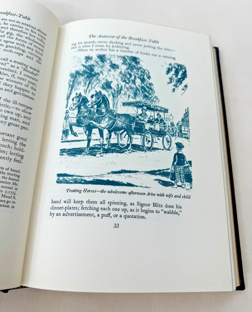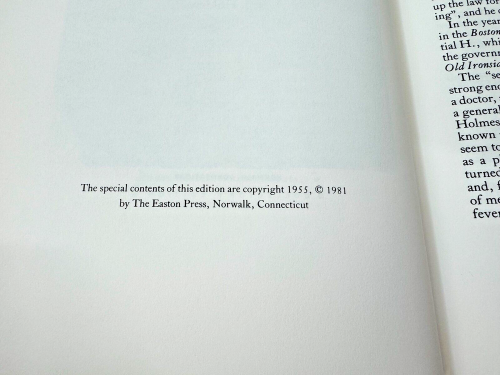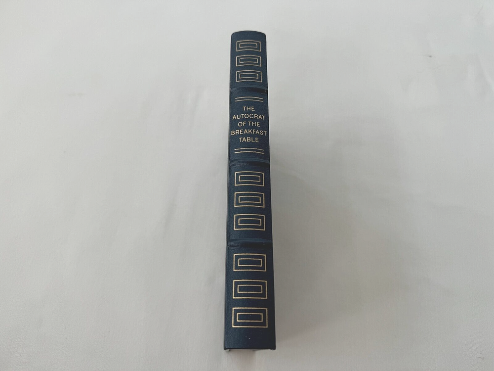 From the Easton Press Masterpieces of American Literature... The Autocrat of the Breakfast Table by Oliver Wendell Holmes Illustrated by R. J. Holden Copyright 1981 by The Easton Press Bound in Premium Full Leather This volume contains all of the classic Easton Press trimmings: Premium Leather Silk Moire Endleaves Distinctive Cover Design Hubbed Spine, Accented in Real 22KT Gold Satin Ribbon Page Marker Gilded Page Edges Long-lasting, High Quality Acid-neutral Paper Smyth-sewn Pages for Strength and Durability Beautiful Illustrations DESCRIPTION A very scarce title in any condition, this Edition is in near Mint and Unread condition. The front and back covers are in near Fine condition showing only minor wear and the gilded page edges show hardly any wear at all! There are no markings, bookplates, or other signs of prior ownership in this book. This book is part of the Masterpieces of American Literature Collection published by The Easton Press and would be a beautiful addition to your Easton Press collection. Overall, this copy is a grade collector's set. This set is very elusive in this superior condition, as only a limited number of them were ever published, so now is the time to act. Hopefully you can add this set to your collection and enjoy it in the years to come... SHIPPING POLICY We take great care packaging every item to ensure safe shipment to you. Items are packaged using plenty of bubble wrap and packaged securely in a sturdy box. Our secure shipping methods have resulted in zero damaged items in over 15 years! Items are shipped out within 1 - 3 days of payment being received. RETURN & REFUND POLICY We accept refunds within 30 days of purchase. If you are not 100% satisfied with your purchase, please contact us about a refund, or initiate a refund through eBay. CONTACT US We are committed to providing our customers with the best possible on-line shopping experience. This includes a commitment to excellent customer service, before you purchase as well as after your order has been delivered. Please feel free to submit any questions or inquiries regarding this item or your order by sending us a message through the eBay messaging system. We will typically respond within 24 hours of receiving your message.
