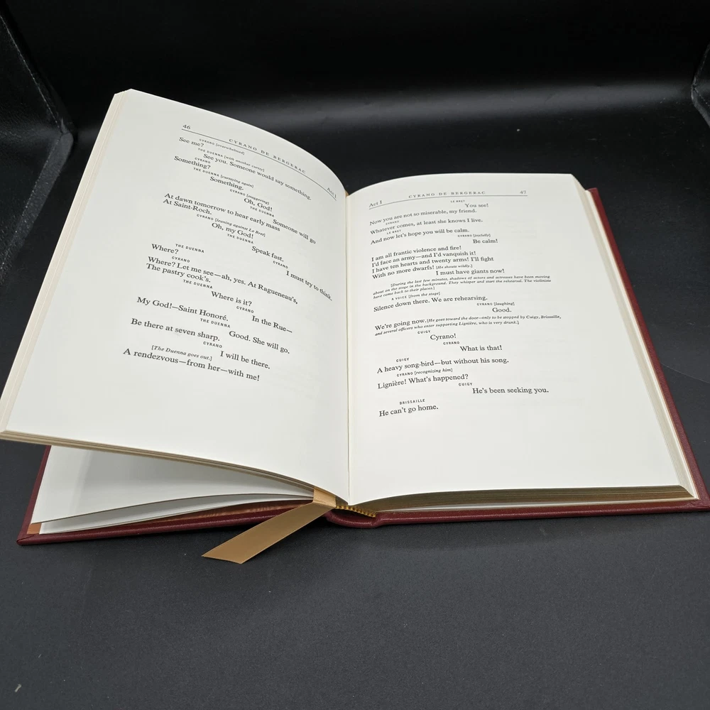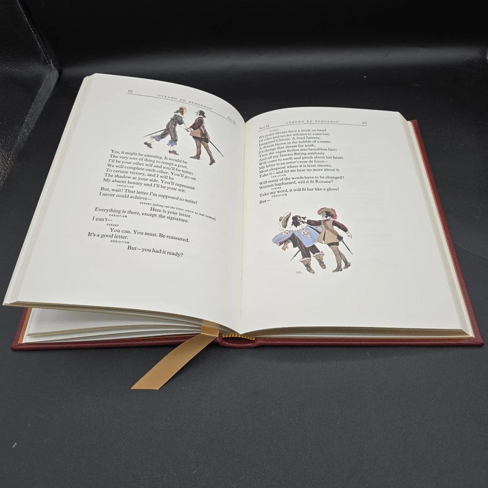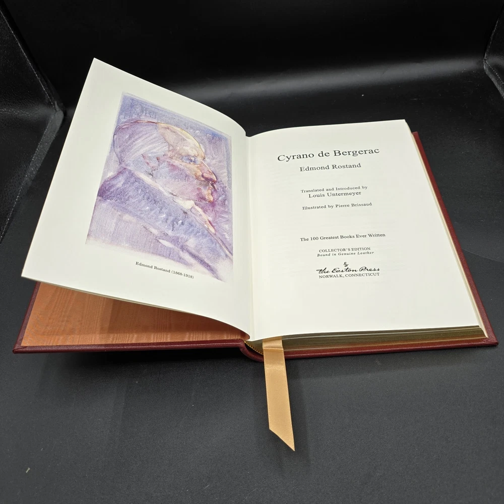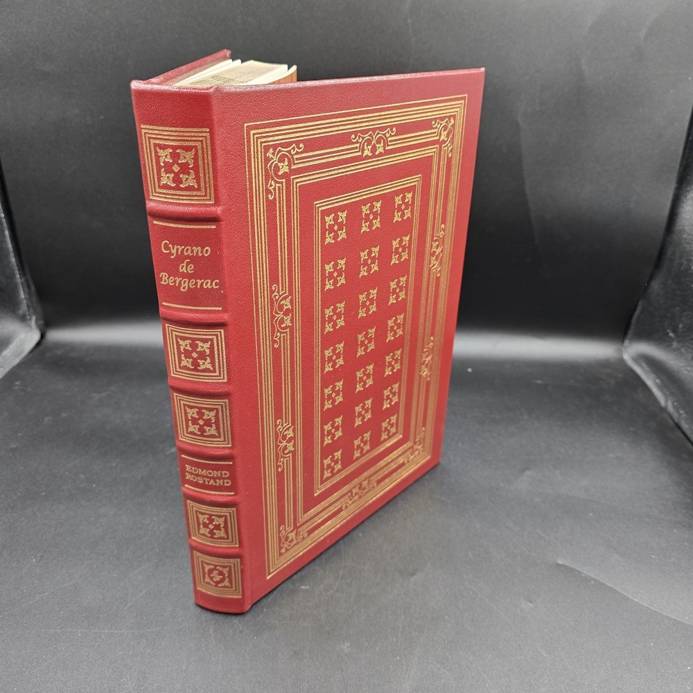 Easton Press CYRANO DE BERGERAC Edmond Rostand 100 Greatest Series Leatherbound. Textured end pages, attached ribbon bookmark, and gilded edges. In very good used condition with one spot of wear on the back cover as shown in the last photo. Please see all photos.