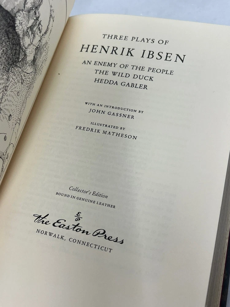 Easton Press Collector’s Edition Three Plays by Henrik Ibsen 1979 Leather Book! Has some marking and slight scratches on gold gilt. View images for details, comes as shown.