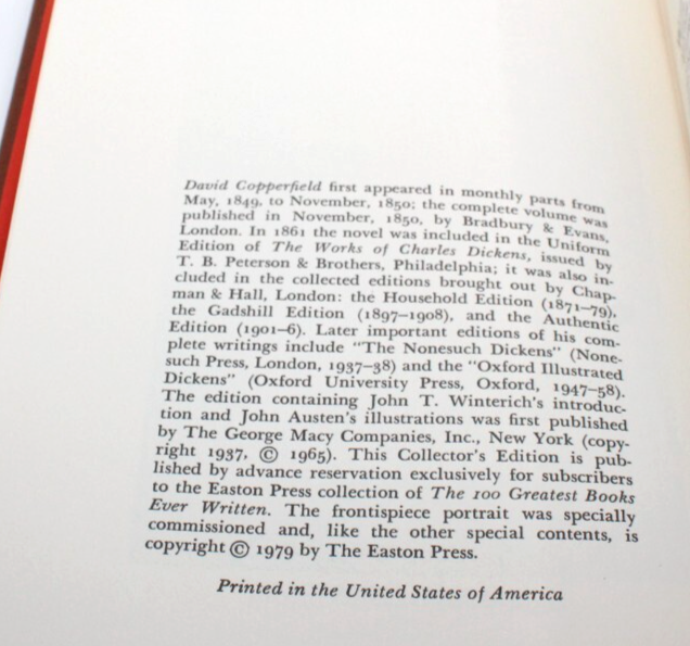 Easton Press Collector's Edition David Copperfield Leather Bound Hardcover Book (1979)