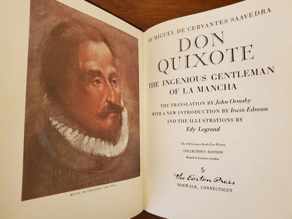 Up for sale is an excellent Easton Press copy of the classic Don Quixote by Miguel De Cervantis Saavedra. This book is part of the 100 Greatest Books Every Written Series by Easton. A large book… CONDITION: This book is in Near Fine to FINE condition with the only flaw being a couple very tiny imperfections or hairline scratch to the gilt page edge, which is almost unnoticeable. An excellent Copy! NOTE: This is our 20 th year selling on eBay with a 100% satisfaction rating, so buy with confidence! Check our eBay Store for many more Easton Press editions, Franklin Library and other collectible books. SHIPPING: U.S. mainland buyers ONLY. We ship all items well packed in a box with tracking, via U.S.P.S. Media Mail, FREE of charge!