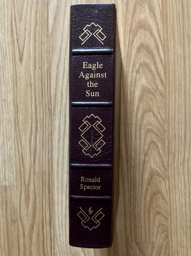 Up for sale is the Eagle Against the Sun by Ronald Spector. This is a leather bound hardcover book with 589 pages. Published in 1989 by The Easton Press. In very good condition. Pages are clean. It has a ribbon marker. Comes with unused bookplate. Authographed by the author for the previous owner. Payment will be through eBay. Buyer please add $6.38 for a USPS Media Mail shipping and handling or $9.65 for a USPS Priority shipping and handling. Browsers welcome! Buyers adored! Buy it now. Good luck on your Military History class.