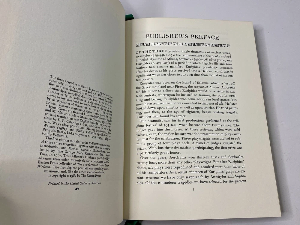 Easton Press Euripides Medea, Hippolytus, the Bacchae 100 Greatest Series 1980. Shipped with USPS Media Mail....