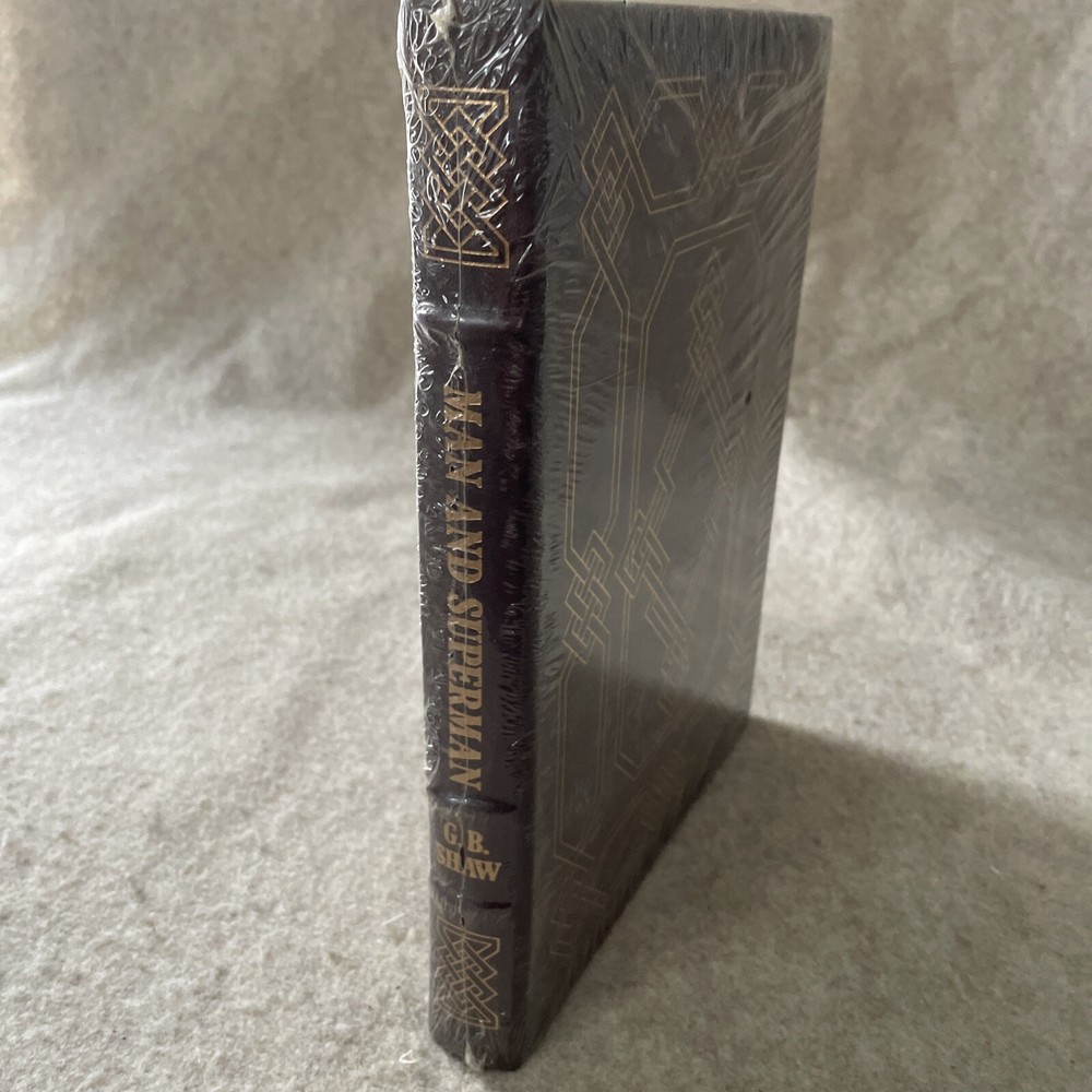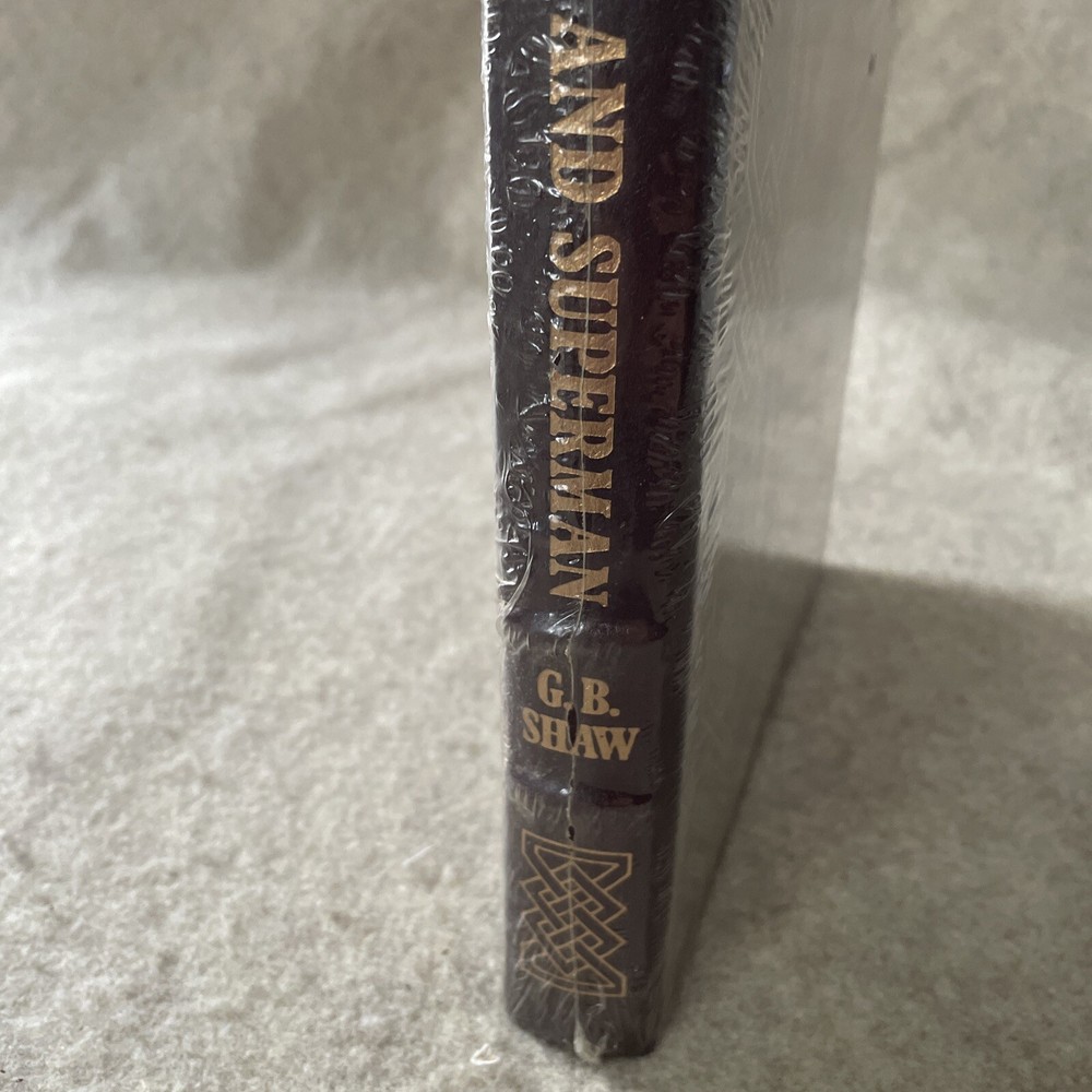Easton Press Famous Editions Man and Superman by George Bernard Shaw This book is in brand new condition and still wrapped in the manufacturer's shrink wrap. There is a cut in one side of the shrink wrap (see photo) and there is some dust between the shrink wrap and the book. The book itself looks perfect. Please see photos. We try to describe as accurately as possible so you will be satisfied with your purchase. We have more books from this set on eBay and we would be happy to combine on shipping to save you money.
