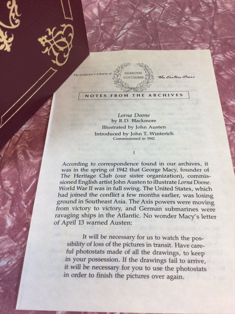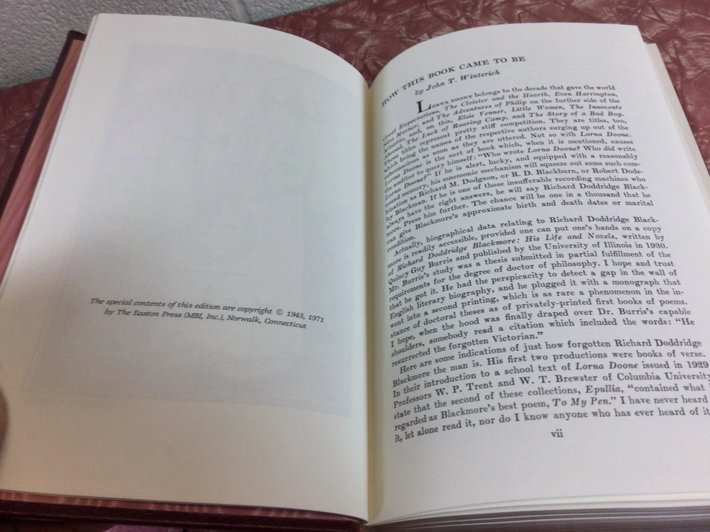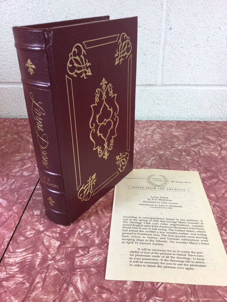 You are looking at a Easton Press leather book Lorna Doone. It is in very good condition. The pictures should show details and condition. K/DFG54