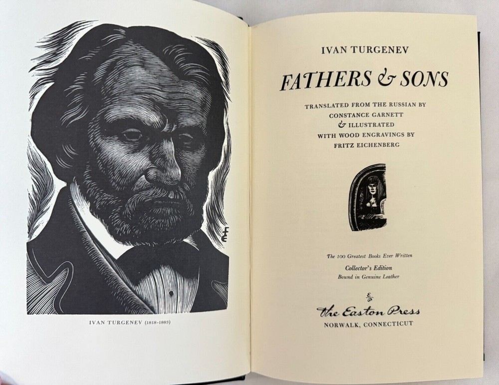 This beautiful edition of Ivan Turgenev's "Fathers and Sons" is a must-have for book collectors and literature enthusiasts alike. The leather binding and illustrated pages make it a stunning addition to any collection. Published in 1977 by Easton Press, this book is part of their "100 Greatest Series" and features Turgenev's classic tale of generational conflict and societal change. It is written in English and is not personalized or signed. The book is in excellent condition and is a true treasure for any lover of classic literature. Check out my store for more books!