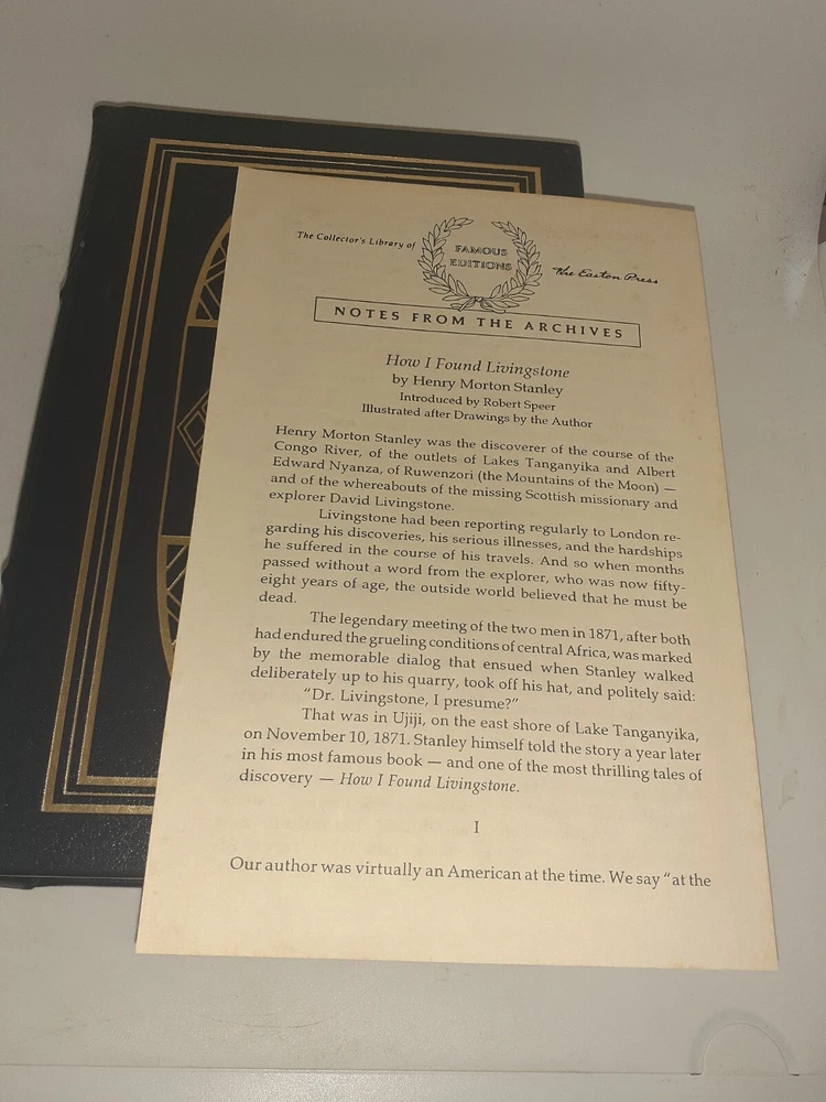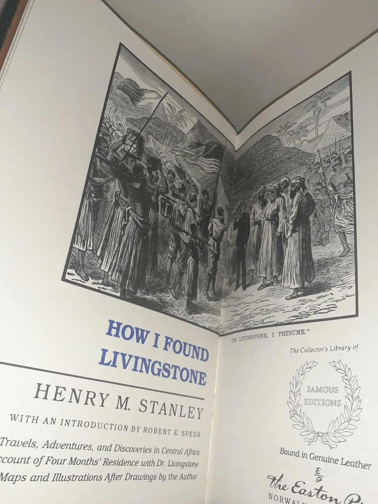 This has some minor wear on the gilding . This is the luxurious edition of the classic book "How I Found Livingston" written by Sir Henry Morton Stanley. The binding is made of high-quality leather, adding to the overall aesthetic of the book. The book is written in English and is a great addition to any collection. The publisher, Easton Press, is known for producing high-quality books that are meant to last for years to come. This particular edition also includes special attributes, making it a must-have for collectors. The book falls under the category of antiquarian and collectible books and is ideal for those interested in literature and fiction. The topic is centered around the author's journey to find Livingston, making it a great adventure read.