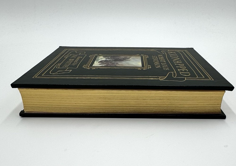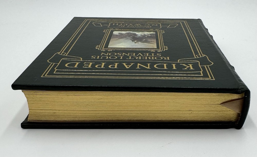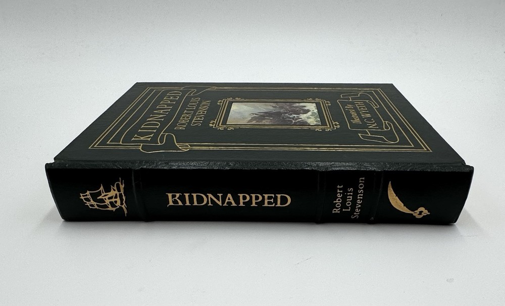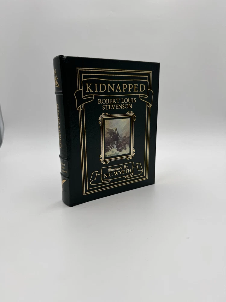 A fine edition of "Kidnapped" by Robert Louis Stevenson, published by Easton Press in 1991. This illustrated version features leather binding and illustrations by N.C. Wyeth. The book is in English and is a classic work by Robert Louis Stevenson. This collectible edition was manufactured in the United States and is part of the Illustrated Easton Press series.