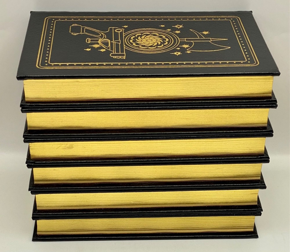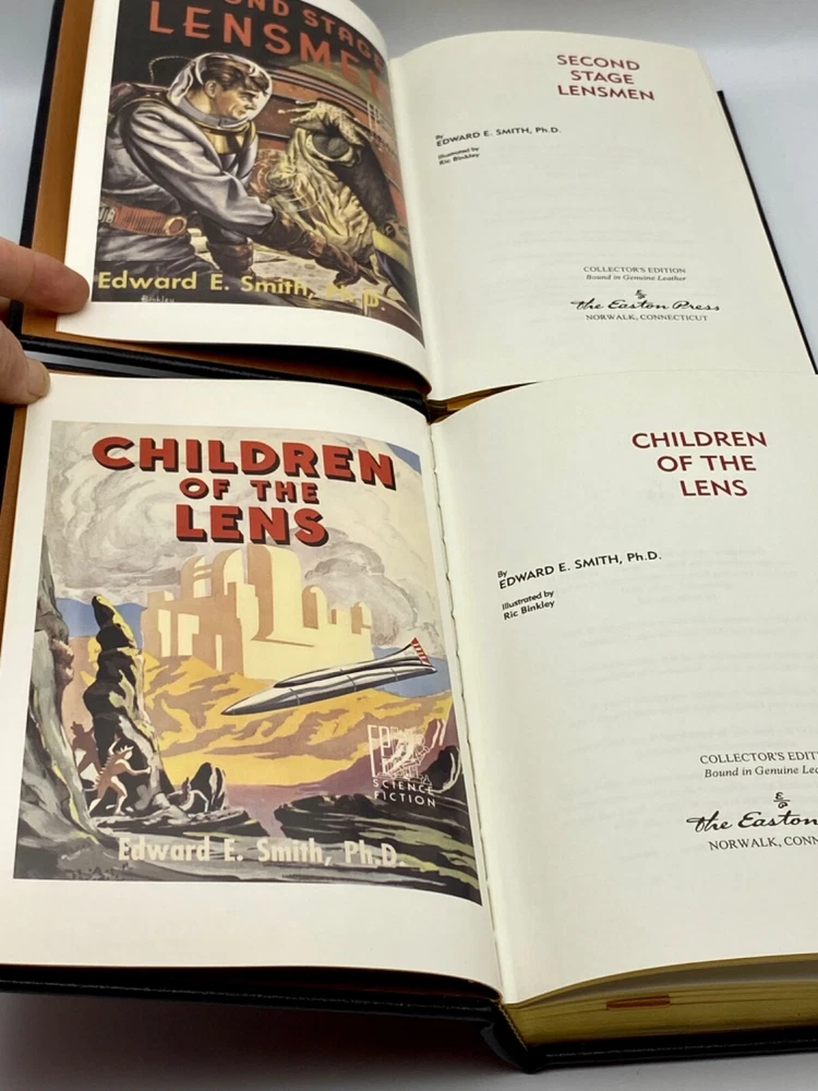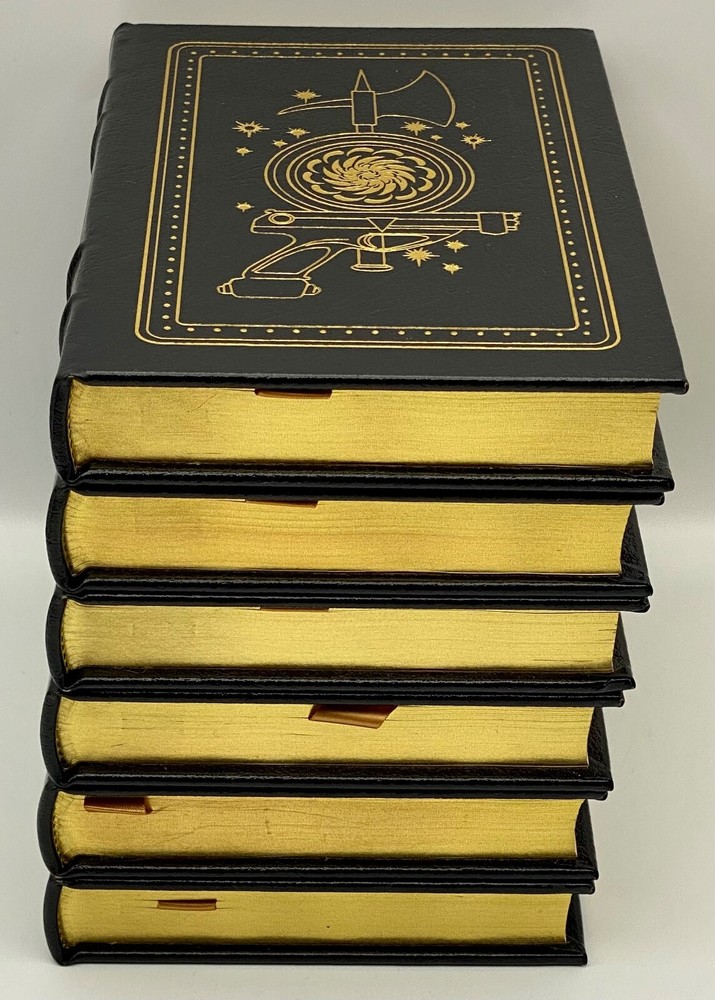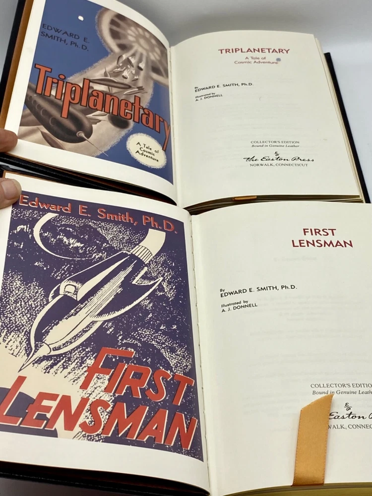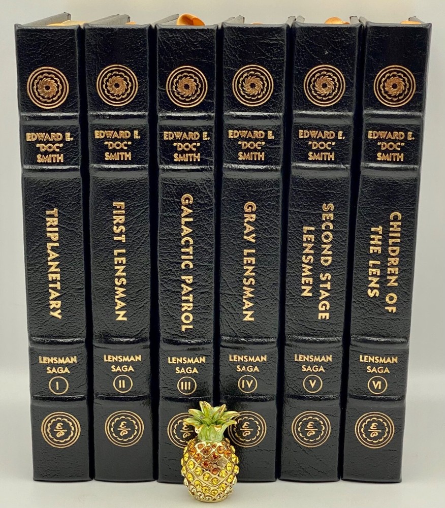MAKES THE PERFECT GIFT FOR ANY FAN OF VINTAGE SCIENCE FICTION NOVELS / FANTASY / EDWARD E. DOC SMITH NOVELS ** PLEASE READ : Mahalo for taking the time to look at our listing. We truly appreciate it. We always do our BEST to give you the most accurate description of these beautiful books. If, however, you have any SPECIFIC questions about the SIZE of the book, NUMBER of pages, TYPE of leather, SMELL or FEEL of the book, PLEASE email us through EBay’s mail system BEFORE you bid, and we will be HAPPY to give you more information. We want you to be completely happy with your purchase and keep you as our customers for years to come!** DESCRIPTION: Easton Press’s full-leather binding, LONG OUT OF PRINT COMPLETE SET of THE LENSMAN SAGA EDITIONS by EDWARD E. DOC SMITH. THIS IS A SCARCE, VERY DIFFICULT TO FIND COMPLETE VINTAGE HEIRLOOM MATCHING EASTON SET WITH DEEP LAVISH GILT IMPRESSIONS TO THE BOARDS AND SPINE with GORGEOUS FULL-COLOR VINTAGE FRONTISPIECES and BLACK & WHITE ILLUSTRATIONS . IT IS ONE OF THE MOST BEAUTIFULLY BOUND & HIGHLY-PRIZED DOC SMITH SETS YOU CAN FIND. 🍍 NOT INCLUDED... 😃 ABOUT THE SET: Edward Elmer Smith, publishing as E. E. Smith, Ph.D. and later as E. E. "Doc" Smith, was an American food engineer and science-fiction author, best known for the Lensman and Skylark series. He is sometimes called the father of space opera. The action in Gray Lensman picks up immediately where Galactic Patrol left off, in the middle of the battle to destroy Helmuth's Main Base and, it is hoped, fully end the threat of Boskone. After the base falls, Kinnison finds some clues that lead him to think that Helmuth was perhaps not the head of Boskone after all. The clues lead Kinnison to mount an expedition aboard the newly constructed super-dreadnought Dauntless, into the Second Galaxy where he thinks the true head of Boskone might reside. The Dauntless locates a planet under attack and comes to its aid, destroying the Boskonian forces and discovering that the entire planet is capable of going "free" (that is, inertialess, the method used in the Lensman books to achieve interstellar and intergalactic space travel). The Lensman returns to the First Galaxy with the space-faring planet and its grateful residents. In Second Stage Lensmen , Kim Kinnison, Number One man of his time, had faced challenges before—but rarely one as daunting as this. To him fell the perilous task of infiltrating the inner circle of Boskone, stronghold of galactic civilization’s most deadly foe. Kinnison had to become a local Boskonian in every gesture, deed—and thought. He had to work his way up through the ranks of an alien enemy organization, right into the highest echelons of power. Then it would be he who issued the orders—orders that would destroy his own civilization… From the atomic age in Atlantis to a world remote in space and time, Triplanetary reveals two incredible ancient races, the Arisians and the Eddorians, who are in the midst of an interstellar war with Earth as the prize. The Arisians, using advanced mental technology, have foreseen the invasion of their galaxy by the corrupt and evil Eddorians, so they begin a breeding program on every planet in their universe. Their goal...to produce super warriors who can hold off the invading Eddorians. The Galactic Patrol's Lensmen are the most feared peacekeepers in the Galaxy. The "Lens," a telepathic jewel matched to the ego of its wearer, is the ultimate weapon in the war against the merciless pirate Boskone and his forces of lawlessness. The only problem is the Galactic Patrol isn't sure how to capitalize on the Lens' incredible powers, but new graduate Kimball Kinnison is determined to learn. Taking command of the experimental fighting ship, the Brittania, Kinnison and his crew set off on a journey of harrowing adventures, coming face to face with deadly space creatures, and the evil pirate Helmuth...who may be the dreaded Boskone himself. In First Lensmen , the not too distance future, while fleets of commercial space ships travel between the planets of numerous solar systems, a traveler named Virgil Samms visits the planet Arisia. There he becomes the first wearer of the Lens, the almost-living symbol of the forces of law and order. As the first Lensman, Samms helps to form the Galactic Patrol, a battalion of Lensmen who are larger than life heroes. These solders are the best of the best, with incredible skills, stealth, and drive. They are dedicated and incorruptible fighters who are willing to die to protect the universe from the most horrific threat it has ever known. In Children of the Lens , it was beginning to look as if no one could prevent the destruction of the Universe. For a strange intelligence was directing the destruction of all civilization from the icy depths of space. Kim Kinnison of the Patrol was one of the few men who knew how near the end was. And in the last desperate plan to save all life, he knew he had to use his children as bait for the evil powers of the planet Ploor. Descriptio E rnest Hemingway (1899-1961), born in Oak Park, Illinois, started his career as a writer in a newspaper office in Kansas City at the age of seventeen. After the United States entered the First World War, he joined a volunteer ambulance unit in the Italian army. Serving at the front, he was wounded, was decorated by the Italian Government, and spent considerable time in hospitals. After his return to the United States, he became a reporter for Canadian and American newspapers and was soon sent back to Europe to cover such events as the Greek Revolution. During the twenties, Hemingway became a member of the group of expatriate Americans in Paris, which he described in his first important work, The Sun Also Rises (1926). Equally successful was A Farewell to Arms (1929), the study of an American ambulance officer’s disillusionment in the war and his role as a deserter. Hemingway used his experiences as a reporter during the civil war in Sp