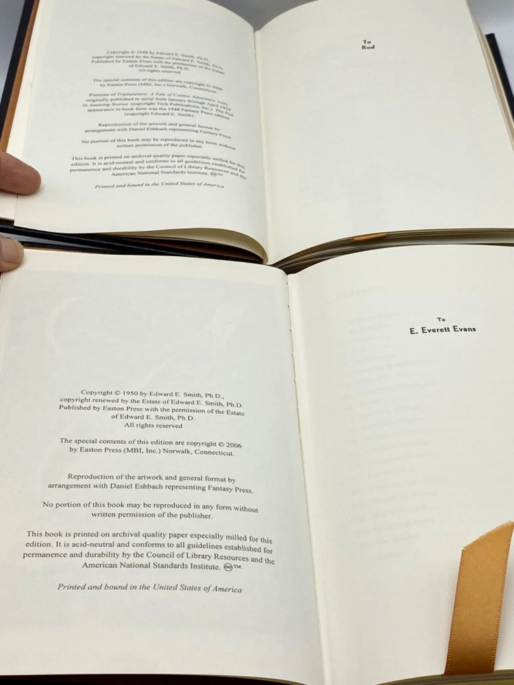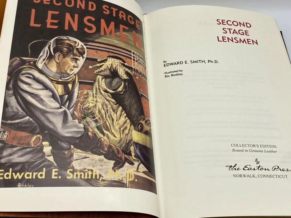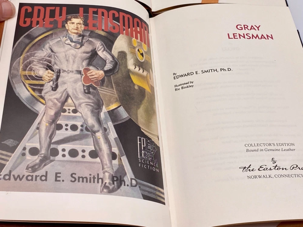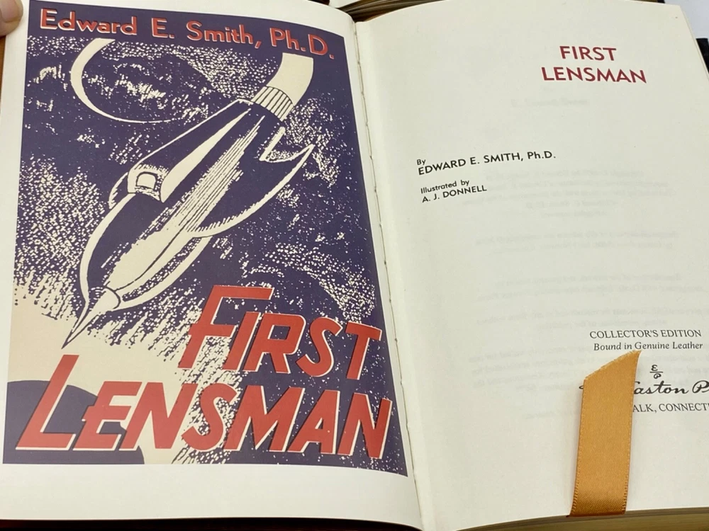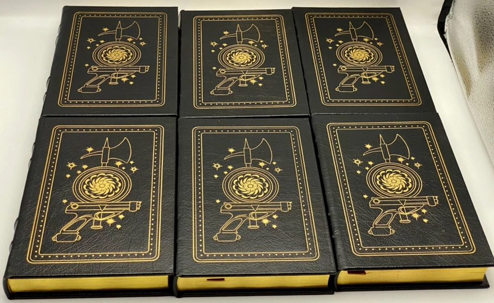 MAKES THE PERFECT GIFT FOR ANY FAN OF VINTAGE SCIENCE FICTION NOVELS / FANTASY / EDWARD E. DOC SMITH NOVELS ** PLEASE READ : Mahalo for taking the time to look at our listing. We truly appreciate it. We always do our BEST to give you the most accurate description of these beautiful books. If, however, you have any SPECIFIC questions about the SIZE of the book, NUMBER of pages, TYPE of leather, SMELL or FEEL of the book, PLEASE email us through EBay’s mail system BEFORE you bid, and we will be HAPPY to give you more information. We want you to be completely happy with your purchase and keep you as our customers for years to come!** DESCRIPTION: Easton Press’s full-leather binding, LONG OUT OF PRINT COMPLETE SET of THE LENSMAN SAGA EDITIONS by EDWARD E. DOC SMITH. THIS IS A SCARCE, VERY DIFFICULT TO FIND COMPLETE VINTAGE HEIRLOOM MATCHING EASTON SET WITH DEEP LAVISH GILT IMPRESSIONS TO THE BOARDS AND SPINE with GORGEOUS FULL-COLOR VINTAGE FRONTISPIECES and BLACK & WHITE ILLUSTRATIONS . IT IS ONE OF THE MOST BEAUTIFULLY BOUND & HIGHLY-PRIZED DOC SMITH SETS YOU CAN FIND. 🍍 NOT INCLUDED... 😃 ABOUT THE SET: Edward Elmer Smith, publishing as E. E. Smith, Ph.D. and later as E. E. "Doc" Smith, was an American food engineer and science-fiction author, best known for the Lensman and Skylark series. He is sometimes called the father of space opera. The action in Gray Lensman picks up immediately where Galactic Patrol left off, in the middle of the battle to destroy Helmuth's Main Base and, it is hoped, fully end the threat of Boskone. After the base falls, Kinnison finds some clues that lead him to think that Helmuth was perhaps not the head of Boskone after all. The clues lead Kinnison to mount an expedition aboard the newly constructed super-dreadnought Dauntless, into the Second Galaxy where he thinks the true head of Boskone might reside. The Dauntless locates a planet under attack and comes to its aid, destroying the Boskonian forces and discovering that the entire planet is capable of going "free" (that is, inertialess, the method used in the Lensman books to achieve interstellar and intergalactic space travel). The Lensman returns to the First Galaxy with the space-faring planet and its grateful residents. In Second Stage Lensmen , Kim Kinnison, Number One man of his time, had faced challenges before—but rarely one as daunting as this. To him fell the perilous task of infiltrating the inner circle of Boskone, stronghold of galactic civilization’s most deadly foe. Kinnison had to become a local Boskonian in every gesture, deed—and thought. He had to work his way up through the ranks of an alien enemy organization, right into the highest echelons of power. Then it would be he who issued the orders—orders that would destroy his own civilization… From the atomic age in Atlantis to a world remote in space and time, Triplanetary reveals two incredible ancient races, the Arisians and the Eddorians, who are in the midst of an interstellar war with Earth as the prize. The Arisians, using advanced mental technology, have foreseen the invasion of their galaxy by the corrupt and evil Eddorians, so they begin a breeding program on every planet in their universe. Their goal...to produce super warriors who can hold off the invading Eddorians. The Galactic Patrol's Lensmen are the most feared peacekeepers in the Galaxy. The "Lens," a telepathic jewel matched to the ego of its wearer, is the ultimate weapon in the war against the merciless pirate Boskone and his forces of lawlessness. The only problem is the Galactic Patrol isn't sure how to capitalize on the Lens' incredible powers, but new graduate Kimball Kinnison is determined to learn. Taking command of the experimental fighting ship, the Brittania, Kinnison and his crew set off on a journey of harrowing adventures, coming face to face with deadly space creatures, and the evil pirate Helmuth...who may be the dreaded Boskone himself. In First Lensmen , the not too distance future, while fleets of commercial space ships travel between the planets of numerous solar systems, a traveler named Virgil Samms visits the planet Arisia. There he becomes the first wearer of the Lens, the almost-living symbol of the forces of law and order. As the first Lensman, Samms helps to form the Galactic Patrol, a battalion of Lensmen who are larger than life heroes. These solders are the best of the best, with incredible skills, stealth, and drive. They are dedicated and incorruptible fighters who are willing to die to protect the universe from the most horrific threat it has ever known. In Children of the Lens , it was beginning to look as if no one could prevent the destruction of the Universe. For a strange intelligence was directing the destruction of all civilization from the icy depths of space. Kim Kinnison of the Patrol was one of the few men who knew how near the end was. And in the last desperate plan to save all life, he knew he had to use his children as bait for the evil powers of the planet Ploor. Descriptio E rnest Hemingway (1899-1961), born in Oak Park, Illinois, started his career as a writer in a newspaper office in Kansas City at the age of seventeen. After the United States entered the First World War, he joined a volunteer ambulance unit in the Italian army. Serving at the front, he was wounded, was decorated by the Italian Government, and spent considerable time in hospitals. After his return to the United States, he became a reporter for Canadian and American newspapers and was soon sent back to Europe to cover such events as the Greek Revolution. During the twenties, Hemingway became a member of the group of expatriate Americans in Paris, which he described in his first important work, The Sun Also Rises (1926). Equally successful was A Farewell to Arms (1929), the study of an American ambulance officer’s disillusionment in the war and his role as a deserter. Hemingway used his experiences as a reporter during the civil war in Sp