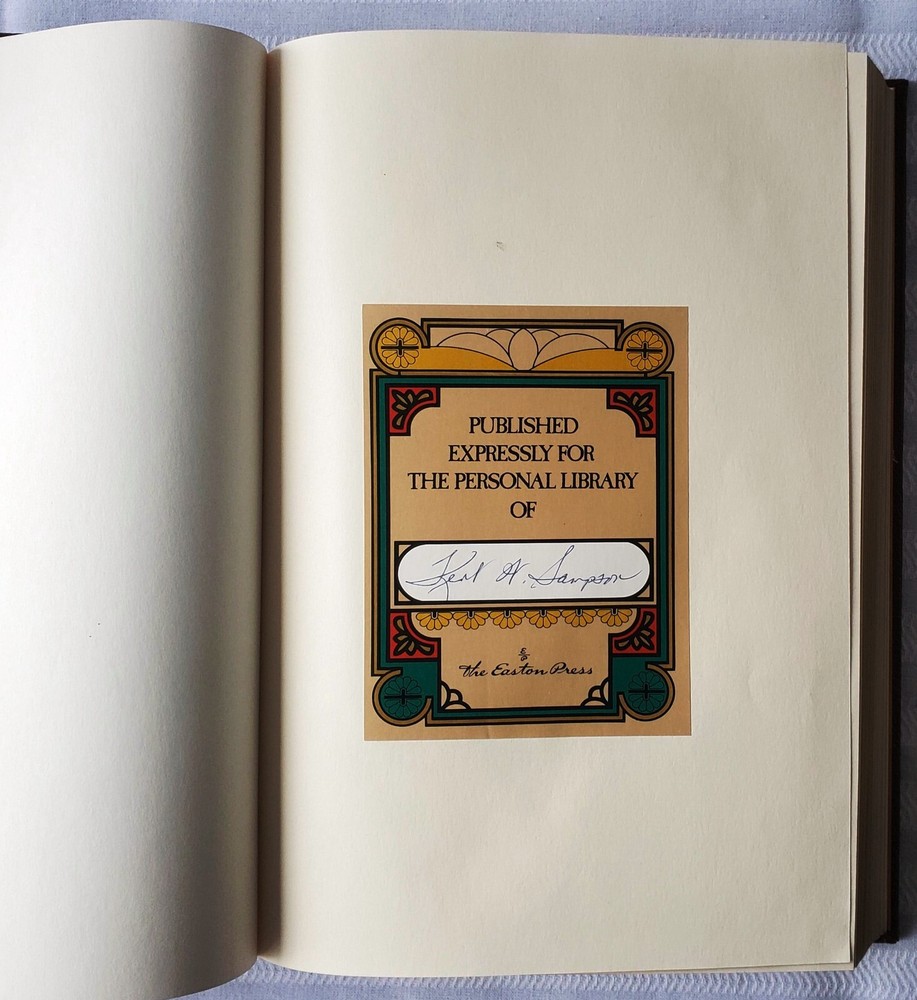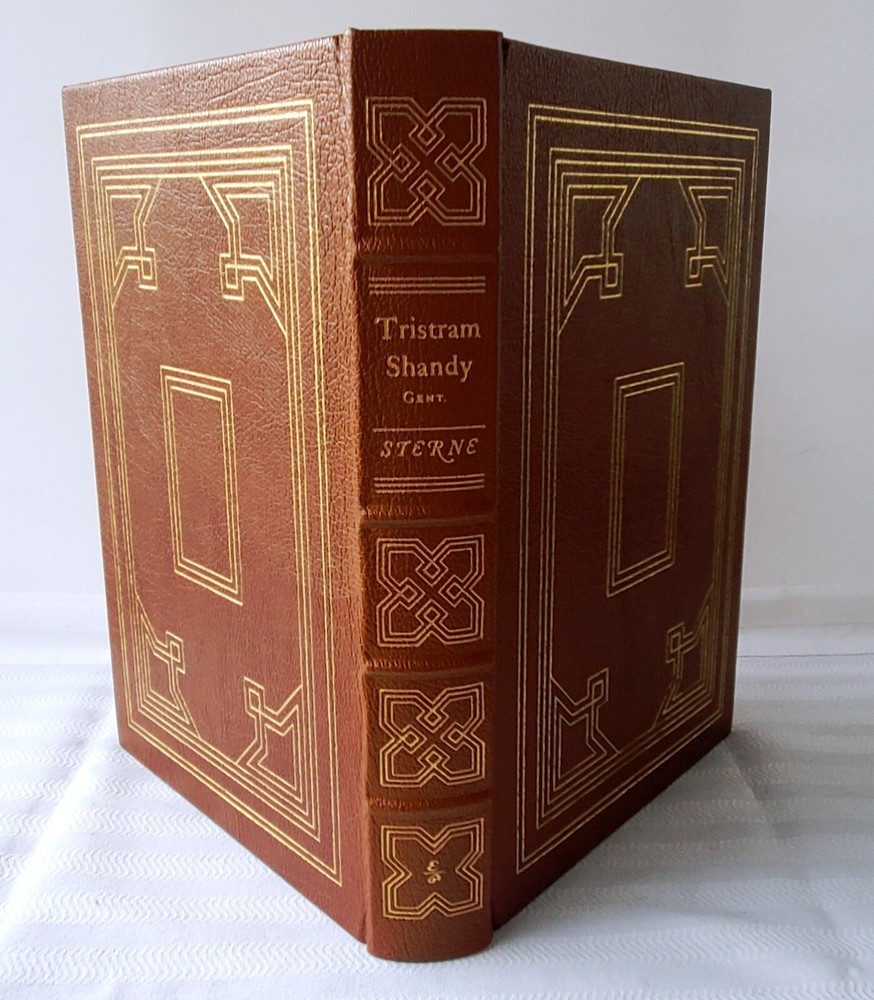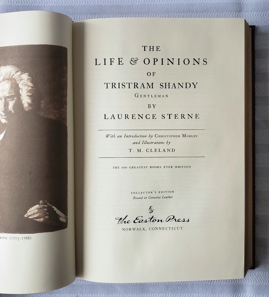 "The Life and Opinions of Tristram Shandy, Gentleman," by Laurence Sterne, published by Easton Press, 1980, 444 pages, 10.5" by 7.5". Special collector's edition for subscribers of Easton Press, with premium leather binding, four raised bands on spine, gilded page edges, 22-karat gold detailing to leather, silk moire endpaper, and a satin bookmark. Bookplate signed by the subscriber in front. One volume in Easton's series of the 100 Greatest Books. In fine condition. Please check my other listings for more Easton Press Collector's Edition titles. Buyer to pay for item plus shipping.
