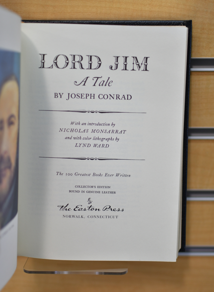 Lord Jim by Joseph Conrad Hardcover: 407 pages Publisher: Easton Press Language: English Flaw: Foxing, Speckling to gold guilting.