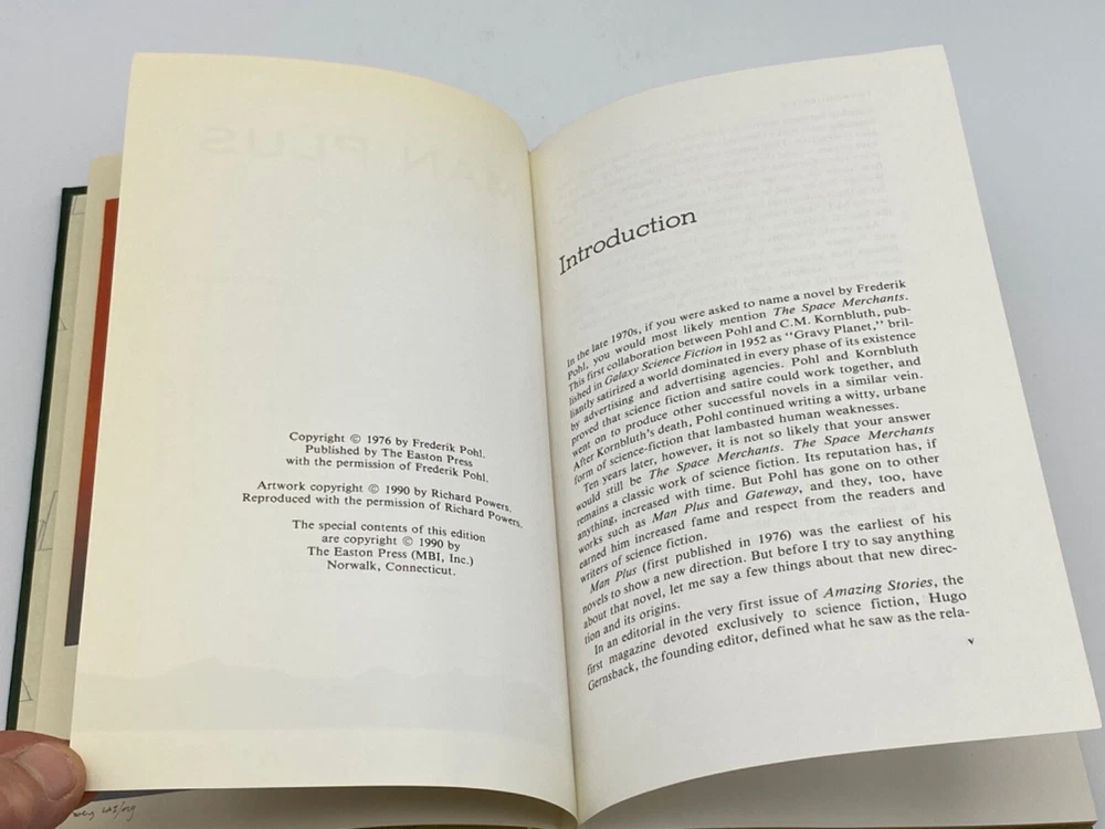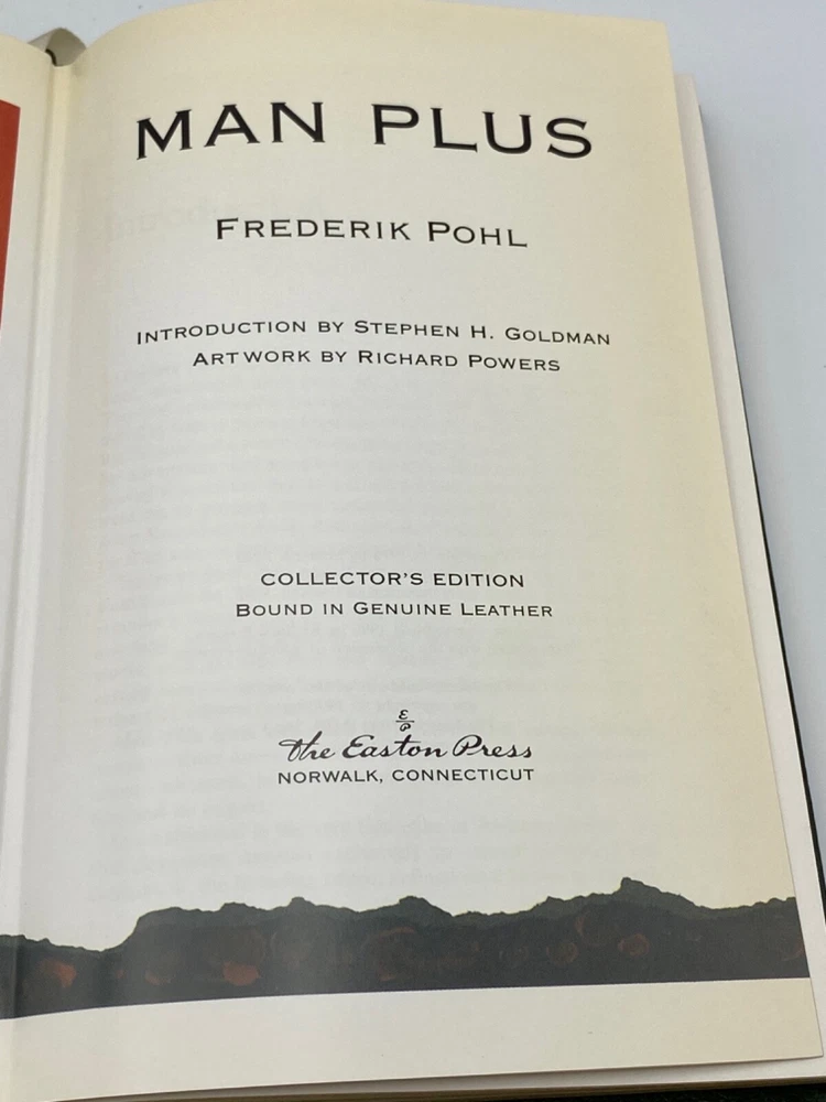 MAKES THE PERFECT GIFT FOR ANY VINTAGE SCI-FI / FREDERIK POHL FAN ** PLEASE READ : Mahalo for taking the time to look at our listing. We truly appreciate it. We always do our BEST to give you the most accurate description of these beautiful books. If, however, you have any SPECIFIC questions about the SIZE of the book, NUMBER of pages, TYPE of leather, SMELL or FEEL of the book, PLEASE email us through EBay’s mail system BEFORE you bid, and we will be HAPPY to give you more information. We want you to be completely happy with your purchase and keep you as our customers for years to come!** DESCRIPTION: Easton Press full-leather binding of MAN PLUS by FREDERIK POHL — THIS IS A VINTAGE HEIRLOOM EASTON WITH LAVISH GILT IMPRESSIONS TO THE BOARDS AND SPINE with A BEAUTIFUL FULL-COLOR FRONTISPIECE. IT IS ONE OF THE MOST SOUGHT AFTER EDITIONS OF THIS GREAT SCIENCE FICTION MASTERPIECE. 🍍 NOT INCLUDED… 😃 ABOUT THE BOOK: Man Plus won the Nebula Award for Best Novel in 1976, was nominated for the Hugo and Campbell Awards, and placed third in the annual Locus Poll in 1977. The story is about a cyborg, Roger Torraway, who is designed to operate in the harsh Martian environment so that humans can colonize Mars. How appropriate to what is going on in the news right now with Space X. CONDITION: Book is in LIKE NEW condition for its age with no discernible flaws (SEE PICS FOR FURTHER DETAILS). NO ATTACHED BOOKPLATES, WRITING FROM PREVIOUS OWNER, ETC. It is a GORGEOUS EDITION. SHIPPING: FREE TO US ADDRESSES ONLY. INTERNATIONAL $ based on location. WE SHIP PRIORITY MAIL & PACK VERY WELL. Please check out our other listings of Easton Press, Franklin Library, Limited Editions Club, First Edition Library, Heritage Press, International Collectors Library and Folio Society editions. WE DO COMBINE SHIPPING IF YOU PURCHASE MORE THAN ONE COPY. Mahalo for looking at our listings! By bidding/purchasing this item, you are helping a very grateful family who sends you our WARMEST ALOHA & MAHALO!