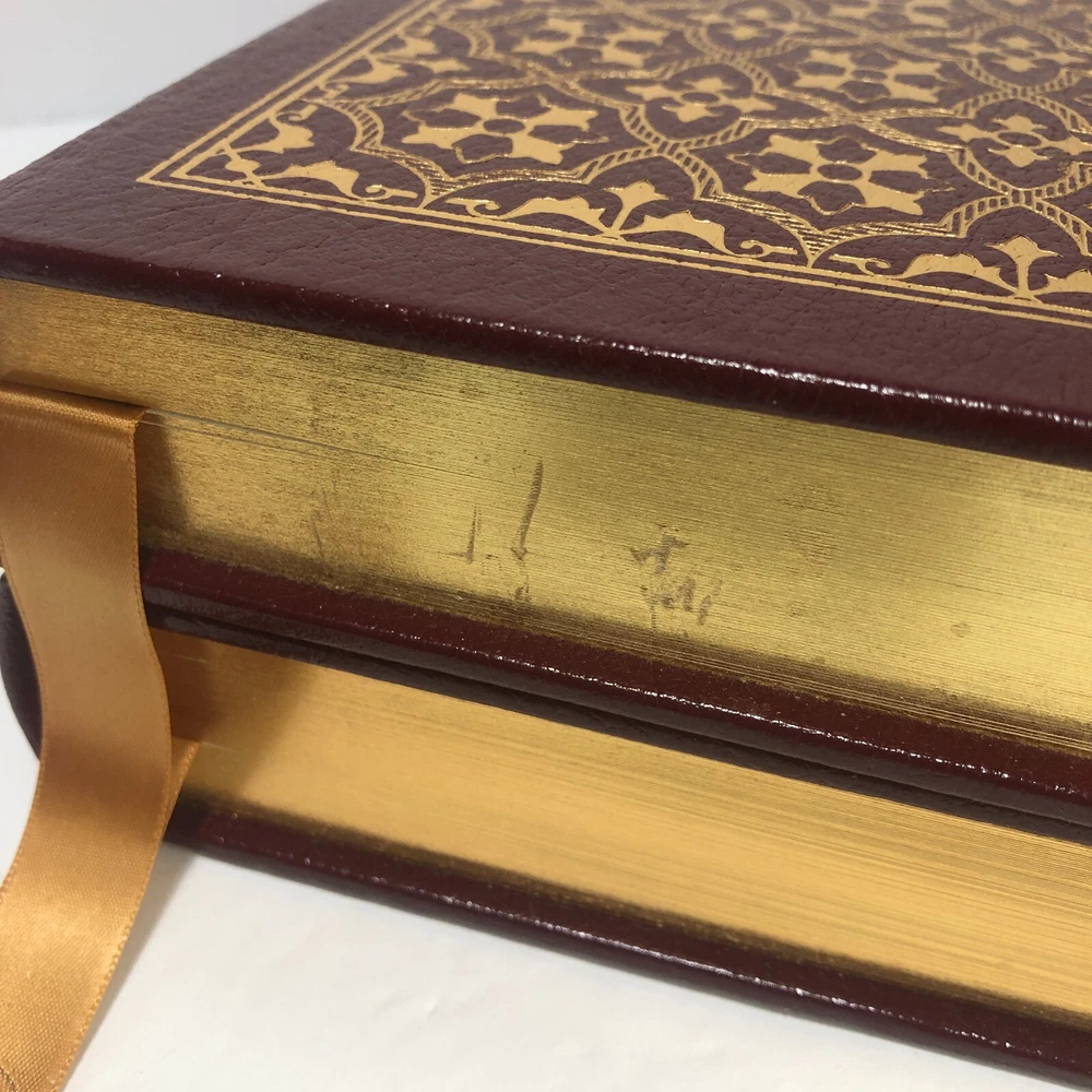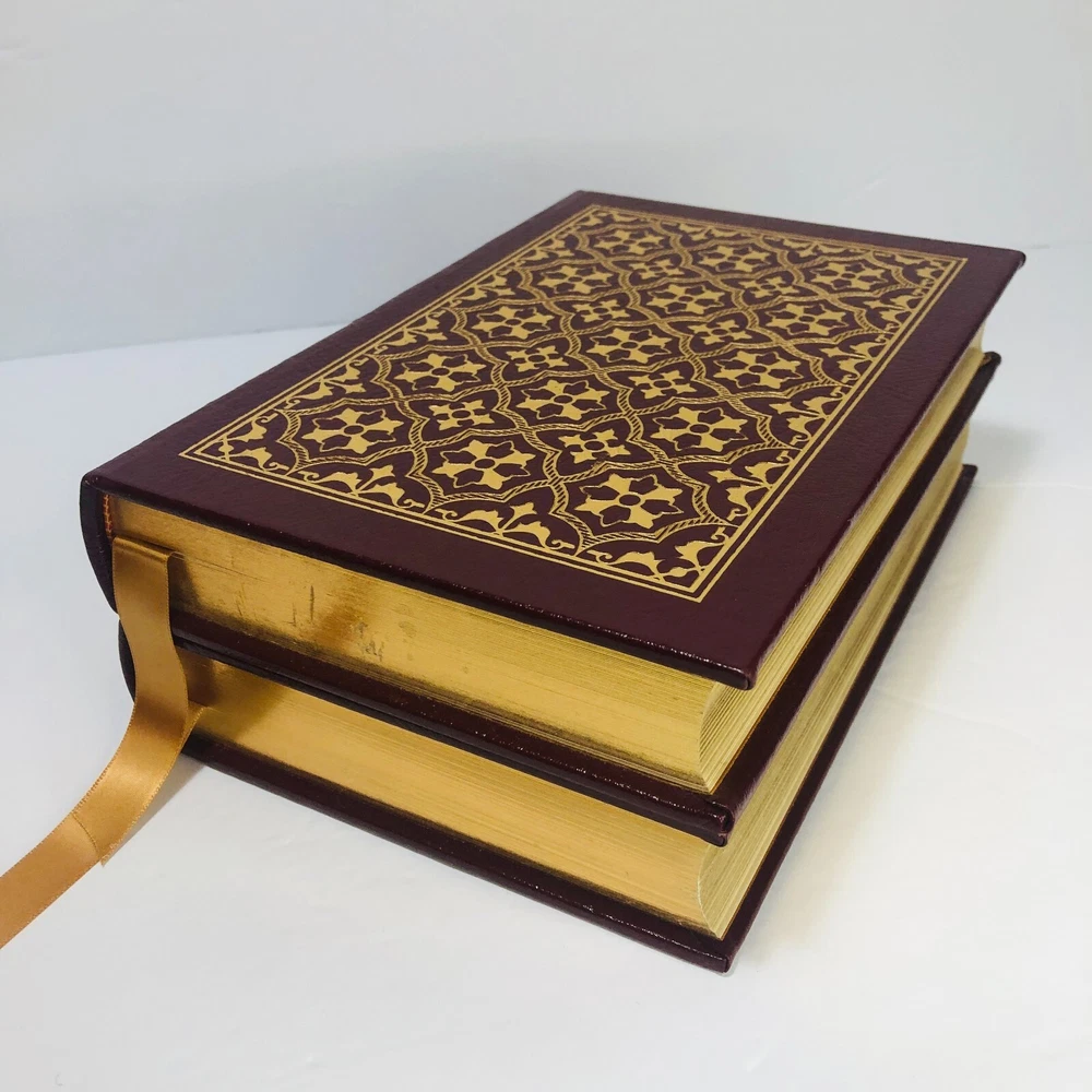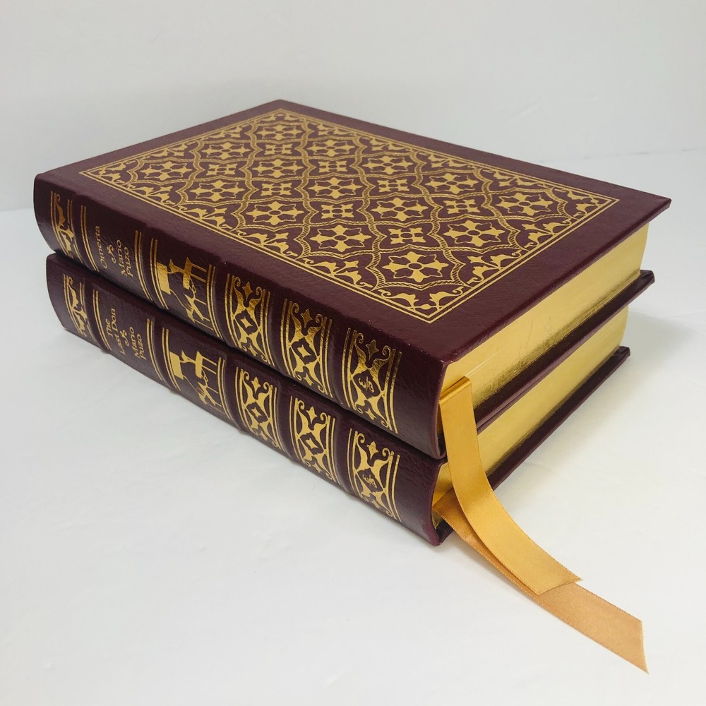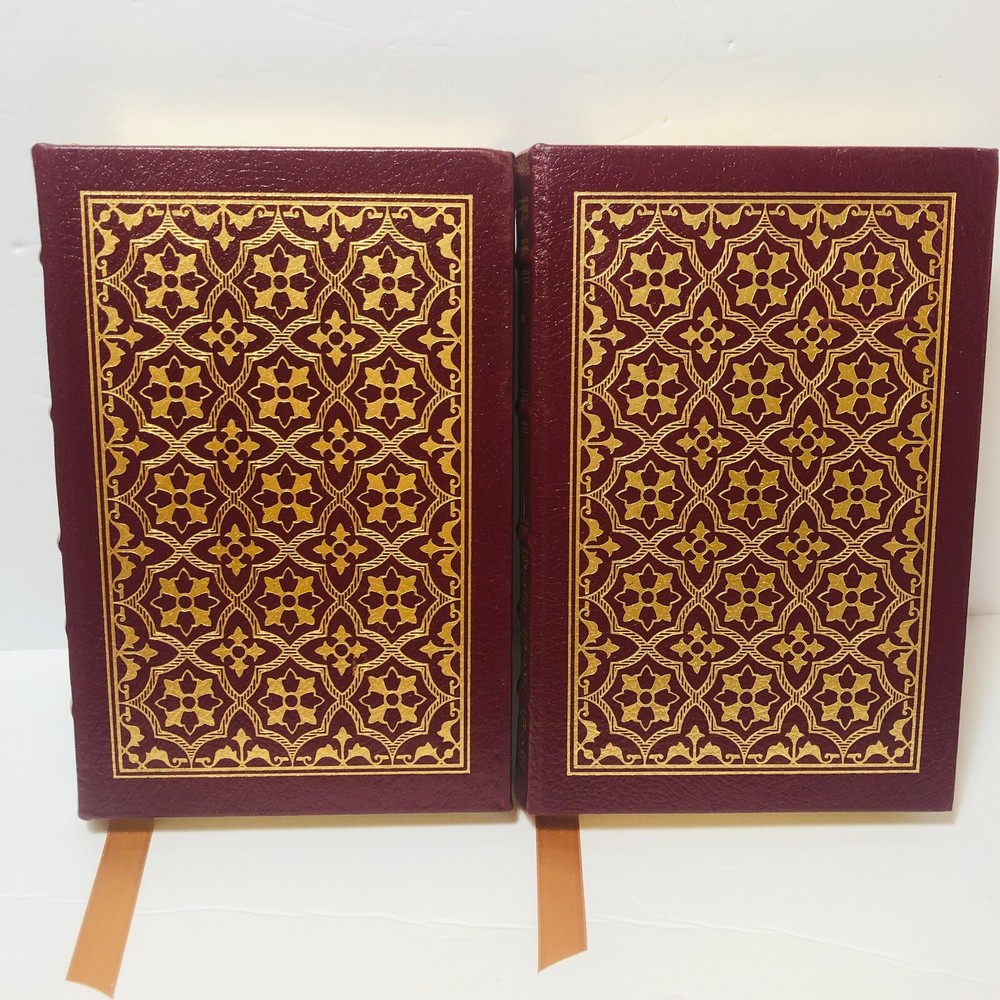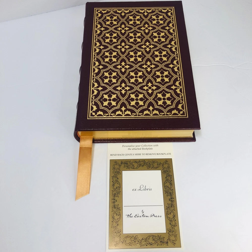 Mario Puzo Godfather Series: 2 HB Leather Books The Last Don, Omerta Easton press EASTON PRESS Books The Godfather Series by Mario Puzo Lot of 2 beautiful maroon-colored leather collector books in the Godfather series from 2003. Gilded pages. Ribbon page markers. Includes Easton Press blank bookplates for each book. The titles in the lot include: * The Last Don * Omerta (includes card with "Note About Omerta") CONDITION: USED but in good condition. Some scuffs in gilding on one book (see photos). Thanks for looking!