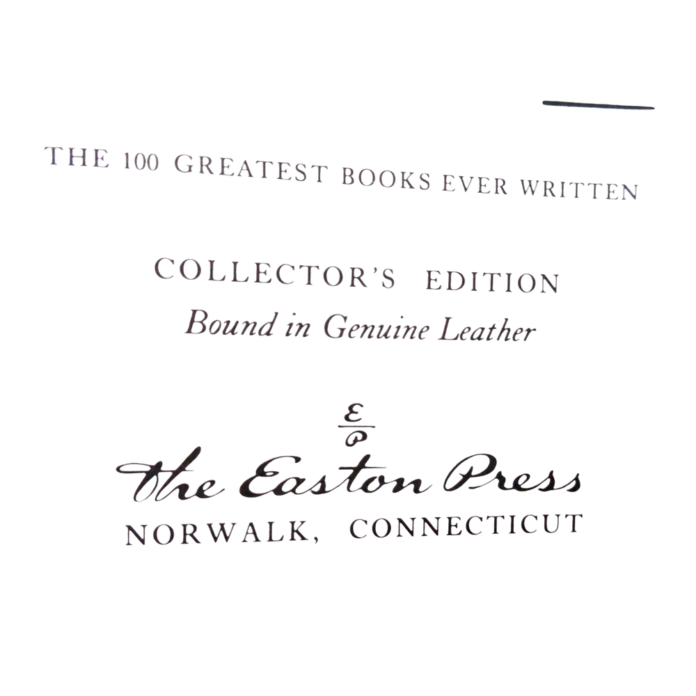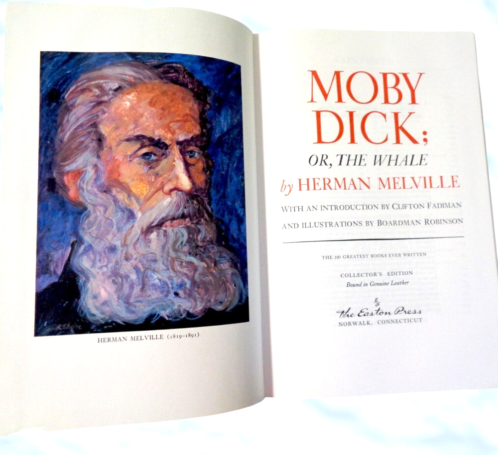 Easton Press Collector's Edition Moby Dick or The Whale by Herman Melville Easton Press Collector's Edition Leather Bound 1977 Height: 10.25" Length: 6.50" Width: 1.75" Number of Pages: 615 This Book is in Wonderful Condition with NO Wear to the Cover or the Pages Within. The Leather Cover, with Gold Gilding, is in Like-New Condition. The Only Flaw I can Find is a Scratch on the Gilding on the Bottom End Pages Which Can Be Seen in the Photographs.