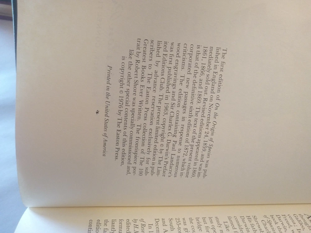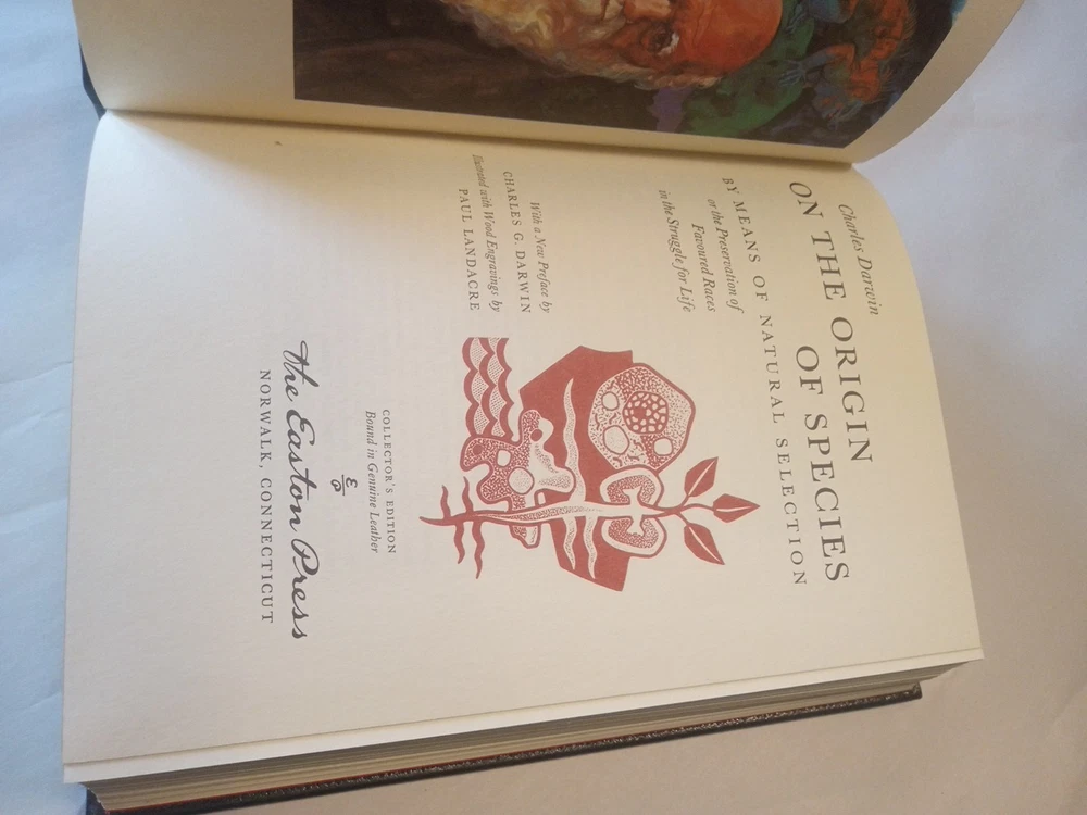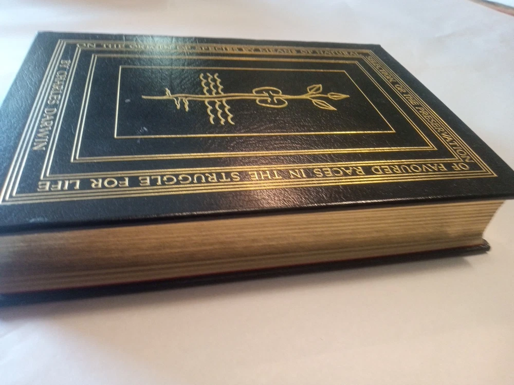 The product is a beautifully bound leather edition of "On the Origin of Species" by Charles Darwin, part of The 100 Greatest Series by Easton Press. This collectible book, published in the United States, contains the original text in English. With its exquisite binding and historical significance, this edition would be a valuable addition to any book collection, particularly for fans of science and the work of Charles Darwin.