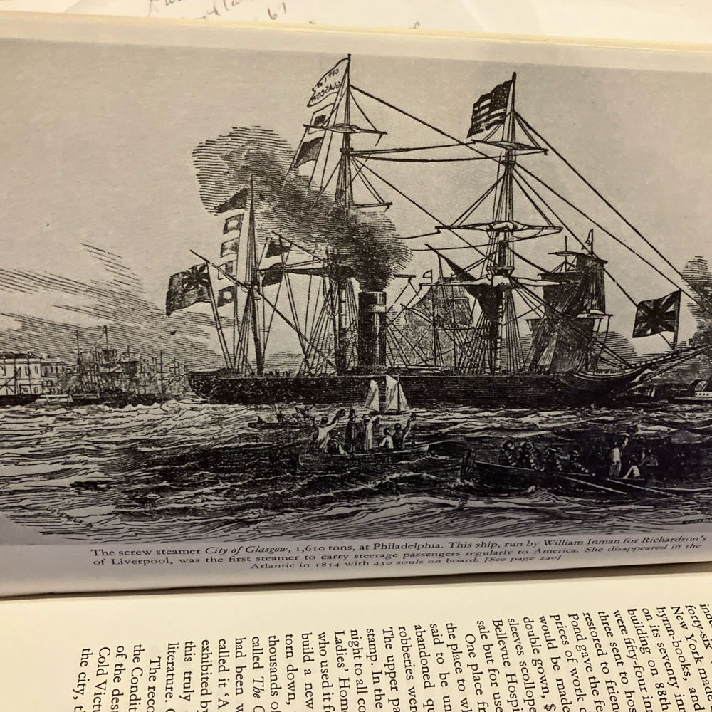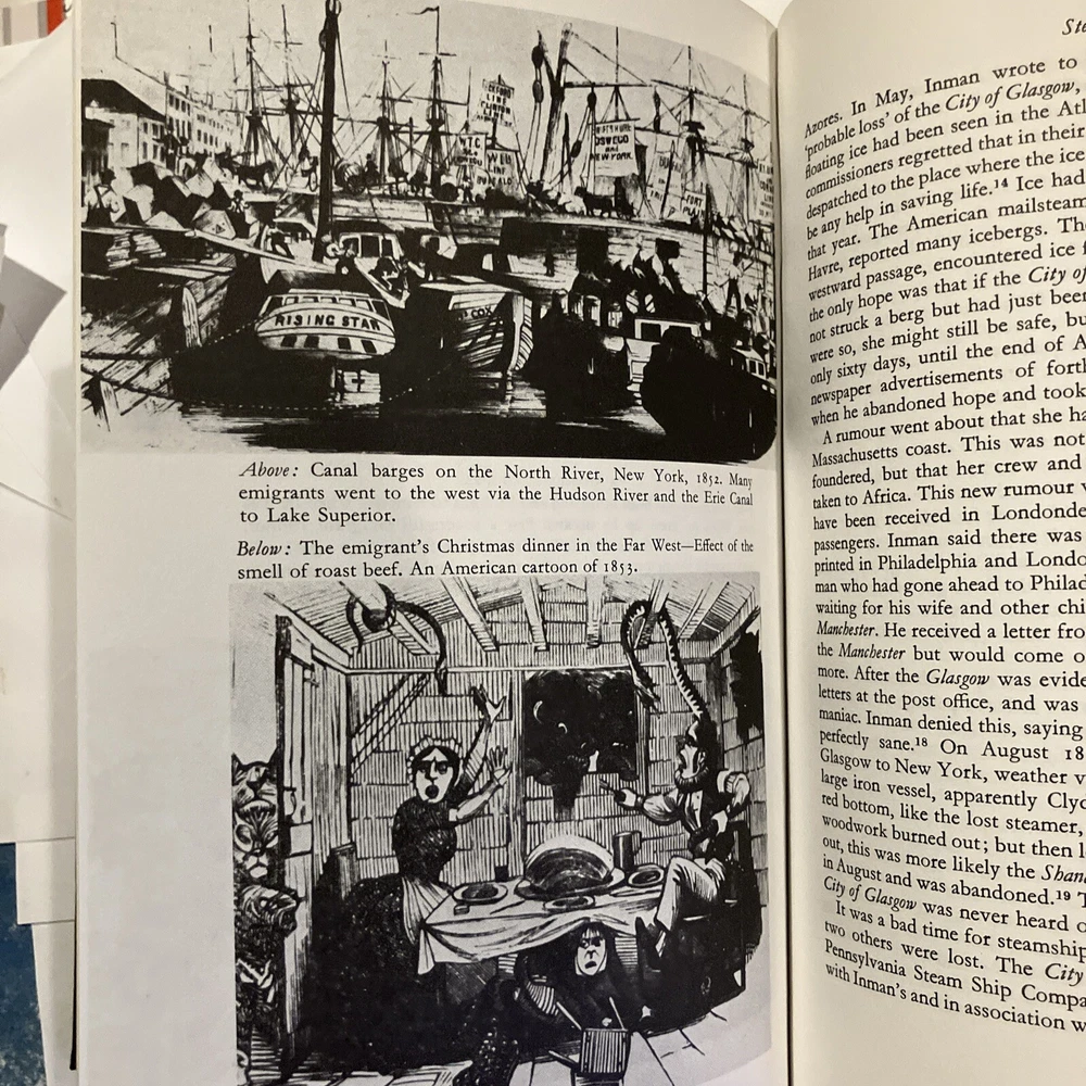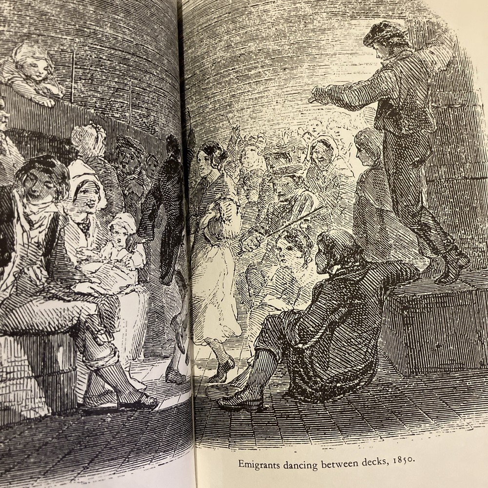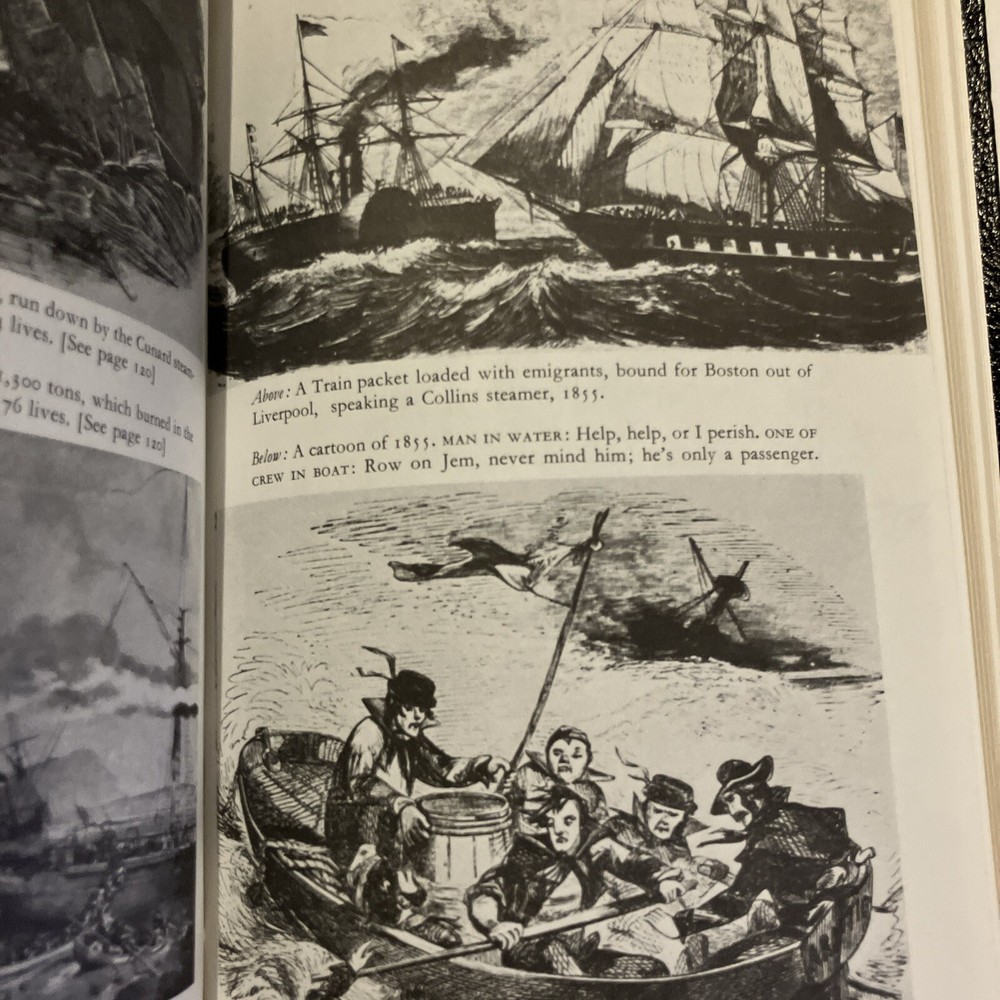 Easton Press leather edition of Terry Coleman's "Passage to America: A History of Emigrants From Great Britain and Ireland to America in the Mid-Nineteenth Century," a COLLECTOR'S edition, one of the LIBRARY OF AMERICAN HISTORY series, Illustrated with Period Photographs, published in 1988. Bound in hunter green leather, the book has decorative paper end leaves, satin book marker, acid-free paper, Symth-sewn binding, hubbed spine, gold gilding on three edges---in near FINE condition —except for a blank attached bookplate on second blank page. COLLECTOR'S NOTES is included. Terry Coleman is a distinguished British journalist and historian. He has reported from eighty countries as a foreign correspondent and interviewed eight British prime ministers from Harold Macmillan to Tony Blair. In 1988, he was named Journalist of the Year. Between 1846-1855, more than two million men, women and children abandoned the British Isles. Whole families and groups of families emigrated together. The average number was 500-700 passengers on a steamer of 800 tons. In 1847, It is estimated that one in six of all who sailed died. These ten years saw by far the greatest emigration from the U.K. to America. The Irish were "shovelled out" by absentee landlords and famine; the English went west to escape poverty and slums. Sea-sick, homesick, herded like cattle, dying like flies, they poured across the Atlantic from Liverpool to New York. They were swindled, robbed, insulted, sexually abused, and terrorized at every stage. Making brilliant use of original diaries and letters, newspapers and prints, Coleman gives us an intensely vivid account of this heroic and historic exodus. An emigrant's manual warned its readers they would be "as captive in their vessels as Africans in a slave ship," the only difference being that "the slaver had a greater interest in keeping his cargo alive." Hundreds of poor people, from the 'driveling' idiot of ninety to the babe just born, were huddled together without light, without air, wallowing in filth and breathing a fetid atmosphere, sick in body, dispirited in heart, living without food or medicine, many dying without the voice of spiritual consolation. Government control over these unscrupulous shipping companies was negligible. By the mid-nineteenth century, it was big business, with plenty of cold-hearted advocates. Upon arrival some took to America immediately, and America to them. Young ANDREW CARNEGIE was one. At 13, he came to New York and soon started as a messenger boy for $2.50 a week. Fifty years later, he was the owner of an iron-and-steel combine that dominated American industry. In the Foreword, Coleman wrote: "This book does not set out to be a history of emigration. It is the story of emigrants---who they were, and why they left, and how and what happened to them." 317 pages, including Sources, Bibliography, Appendices, Occupations of Emigrant to the U.S. in 1852, and an index. I offer combined shipping.