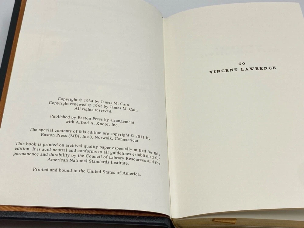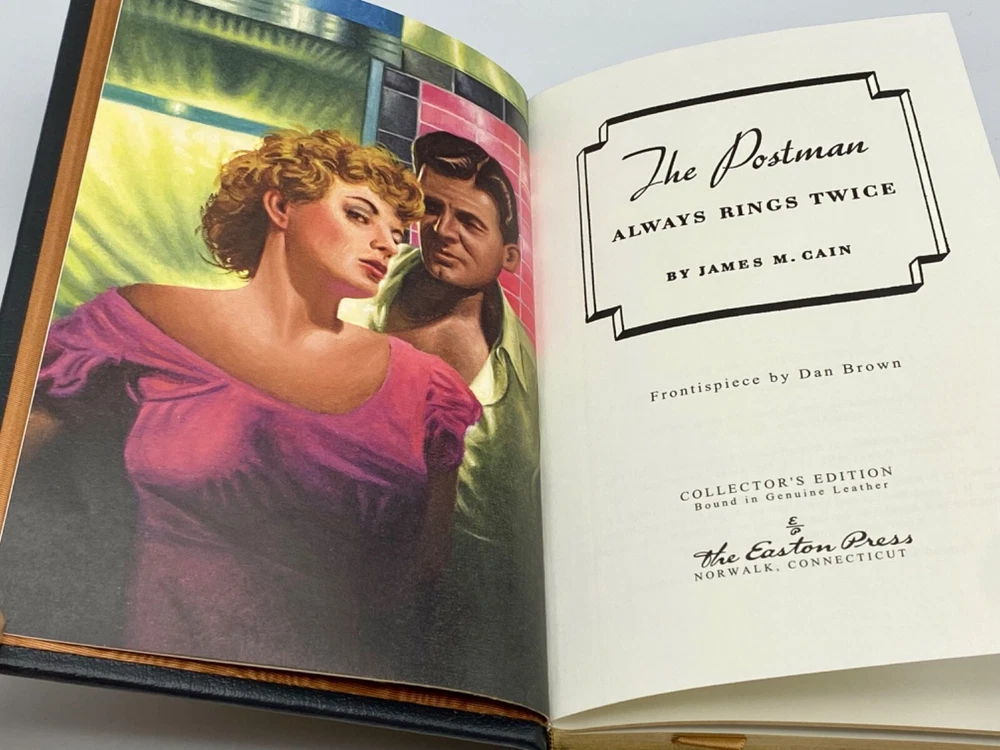 MAKES THE PERFECT GIFT FOR ANY FAN OF VINTAGE MURDER MYSTERIES / THRILLERS / JAMES M. CAIN ** PLEASE READ : Mahalo for taking the time to look at our listing. We truly appreciate it. We always do our BEST to give you the most accurate description of these beautiful books. If, however, you have any SPECIFIC questions about the SIZE of the book, NUMBER of pages, TYPE of leather, SMELL or FEEL of the book, PLEASE email us through EBay’s mail system BEFORE you bid, and we will be HAPPY to give you more information. We want you to be completely happy with your purchase and keep you as our customers for years to come!** DESCRIPTION: Easton Press full-leather binding, LONG OUT OF PRINT edition of THE POSTMAN ALWAYS RINGS TWICE by JAMES M. CAIN THIS IS VERY SCARCE VINTAGE HEIRLOOM EASTON WITH LAVISH DEEP GILT IMPRINTS TO THE BOARDS AND SPINE with A GORGEOUS FULL-COLOR FRONTISPIECE . IT IS ONE OF THE MOST HIGHLY-PRIZED EDITIONS OF THIS CLASSIC MURDER/SUSPENSE MYSTERY. 🍍 NOT INCLUDED... 😃 ABOUT THE BOOK: An amoral young tramp. A beautiful, sullen woman with an inconvenient husband. A problem that has only one grisly solution--a solution that only creates other problems that no one can ever solve. First published in 1934 and banned in Boston for its explosive mixture of violence and eroticism, The Postman Always Rings Twice is a classic of the roman noir . It established James M. Cain as a major novelist with an unsparing vision of America's bleak underside, and was acknowledged by Albert Camus as the model for The Stranger . CONDITION: Book is in LIKE NEW condition for its age with no discernible flaws (PLEASE SEE PHOTOS FOR MORE D ETAILS). NO ATTACHED BOOKPLATES, WRITING FROM PREVIOUS OWNER, ETC. It is a SPECTACULAR edition. SHIPPING: FREE TO US ADDRESSES ONLY. INTERNATIONAL $ based on location. WE SHIP PRIORITY MAIL & PACK VERY WELL. Please check out our other listings of Easton Press, Franklin Library, Limited Editions Club, First Edition Library, Folio Society, Heritage Press, and International Collectors Library editions. WE DO COMBINE SHIPPING IF YOU PURCHASE MORE THAN ONE COPY. Mahalo for looking at our listings! By bidding/purchasing this item, you are helping a very grateful family who sends you our WARMEST ALOHA & MAHALO!