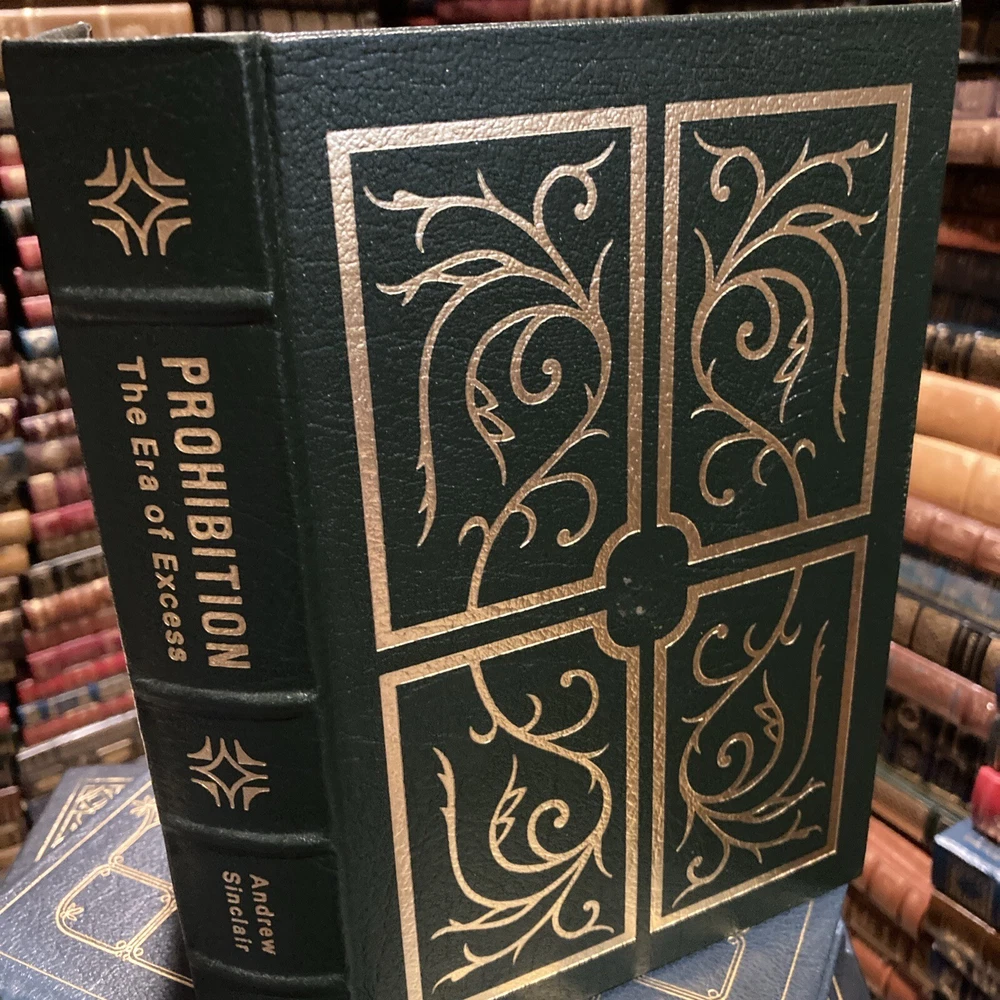 This Easton Press edition of *The Era of Prohibition* is a stunning collector's piece. The hunter green leather binding, gold gilt edges, and satin marker give it a luxurious feel. Despite a minor crimp on the title pages, the book remains in excellent condition. Sinclair's insightful history of Prohibition comes alive in this beautifully crafted volume—a must-have for history enthusiasts and bibliophiles alike. The included collector's notes add extra value to this already impressive edition.