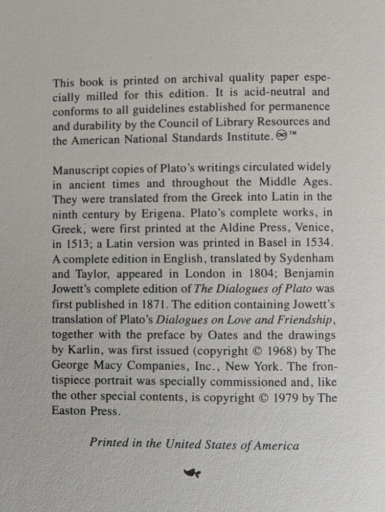 Easton Press Plato - Dialogues on Love and Friendship 100 Greatest Series