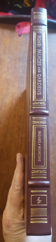 This is an Easton Press "Rome: Palaces and Gardens" Leather HC 9 5/8 x 12 inch (approx.) Glorious Art Series. Book looks to be in Like New condition , 2 light indents on back cover, minor wear if any. Has very light smoke odor. Pl ease see photos for condition. I have other items in my E-Bay store if you are interested. Please see above for shipping and handling. E-mail me with any questions. Thank You!!!