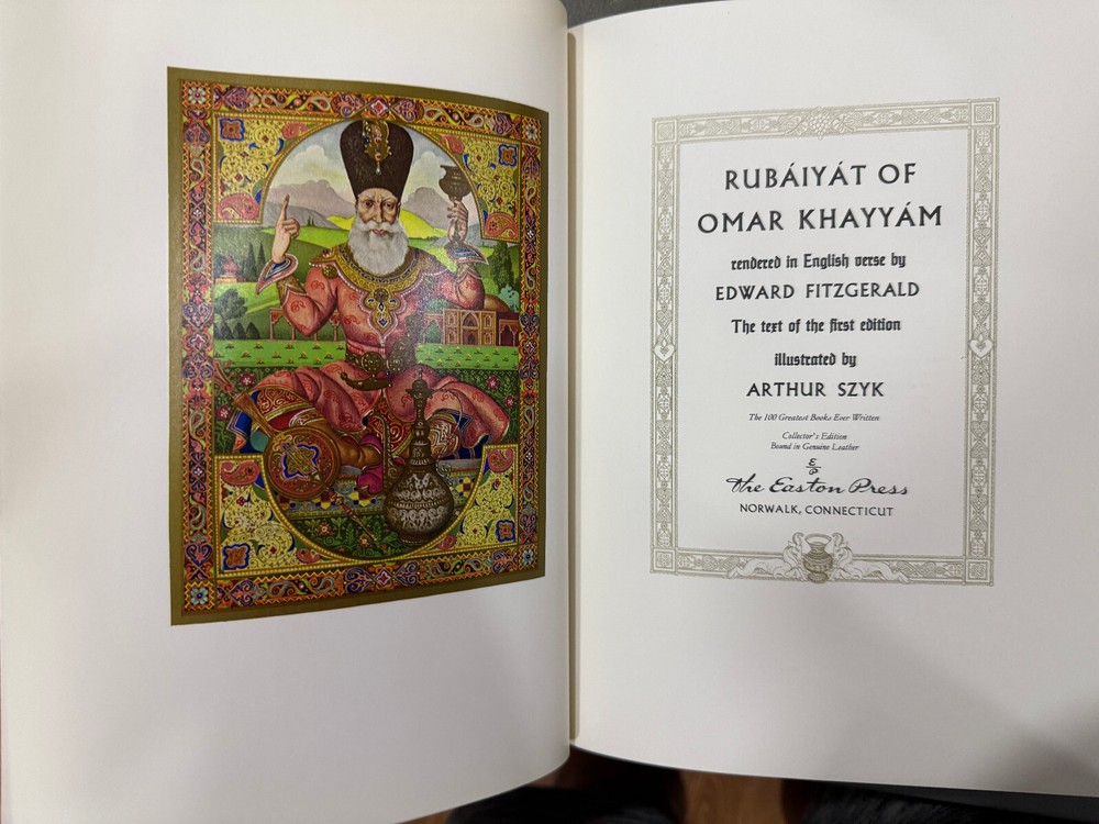 Rubaiyat of Omar Khayyam Easton Press 100 Greatest Series Excellent Condition ! New Books get listed daily !!! 100s of Easton Press and Franklin Library books available!! All books get cleaned with a leather cleaner to remove any dust, odor and restore the beauty of leather!! Combined Shipping Discount: USA buyers - every book $1 off International combined shipping: 1 or 2 books - $45 3 or 4 books - $75 5 + books $17 per book 10+ books $13 per book WE SHIP DAILY!! RETURNS: Hassle-Free 30-days return policy and we pay for a return !! Check our Inventory (Link to eBay Store): http://stores.ebay.com/EastonFranklinBooks