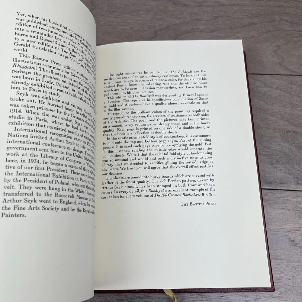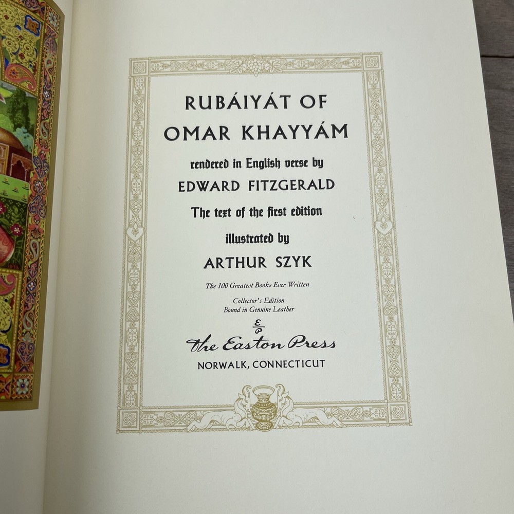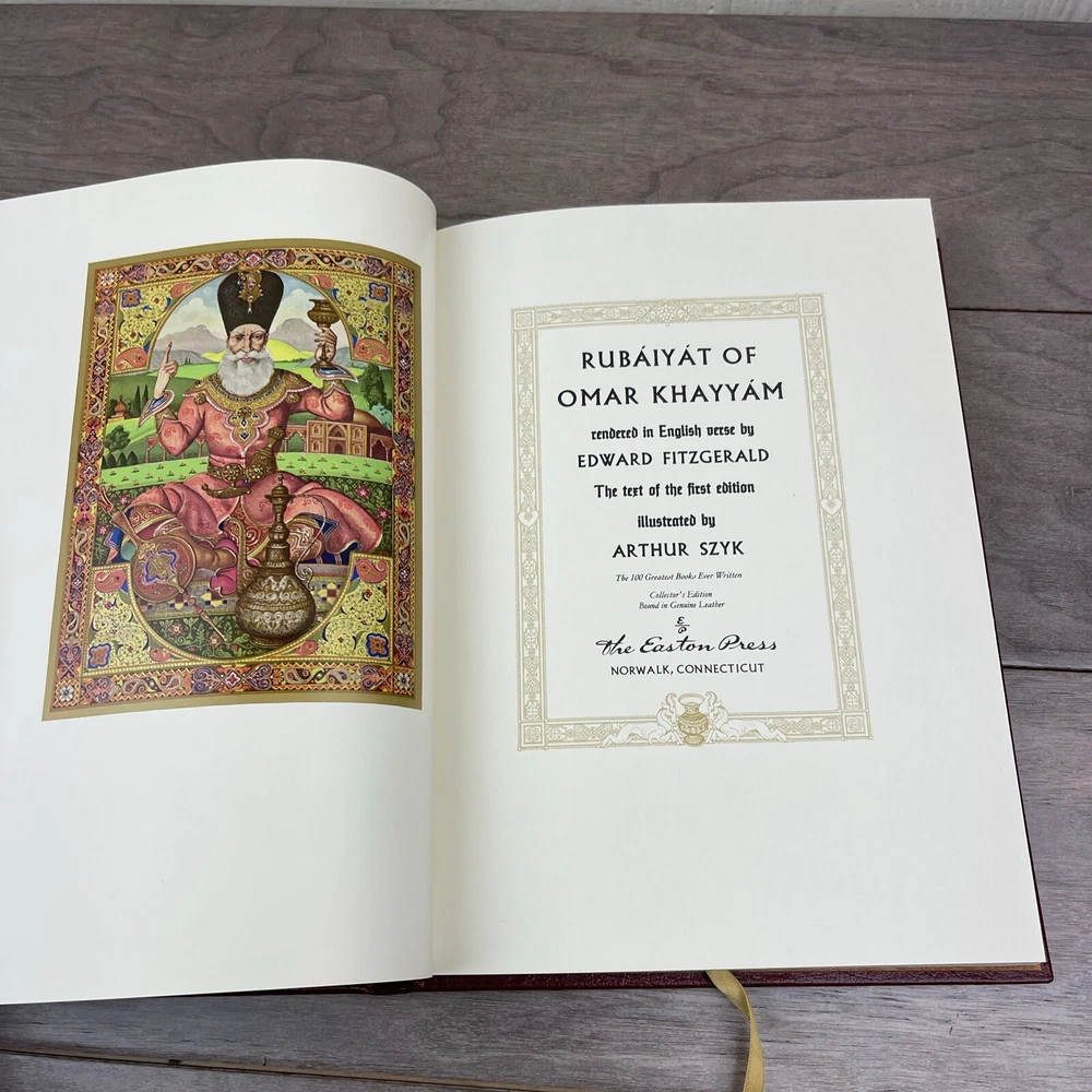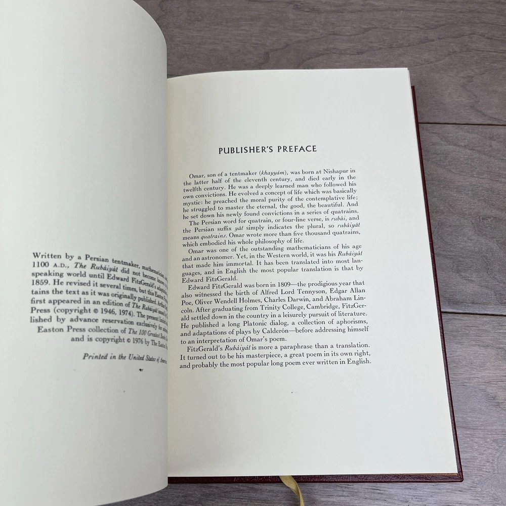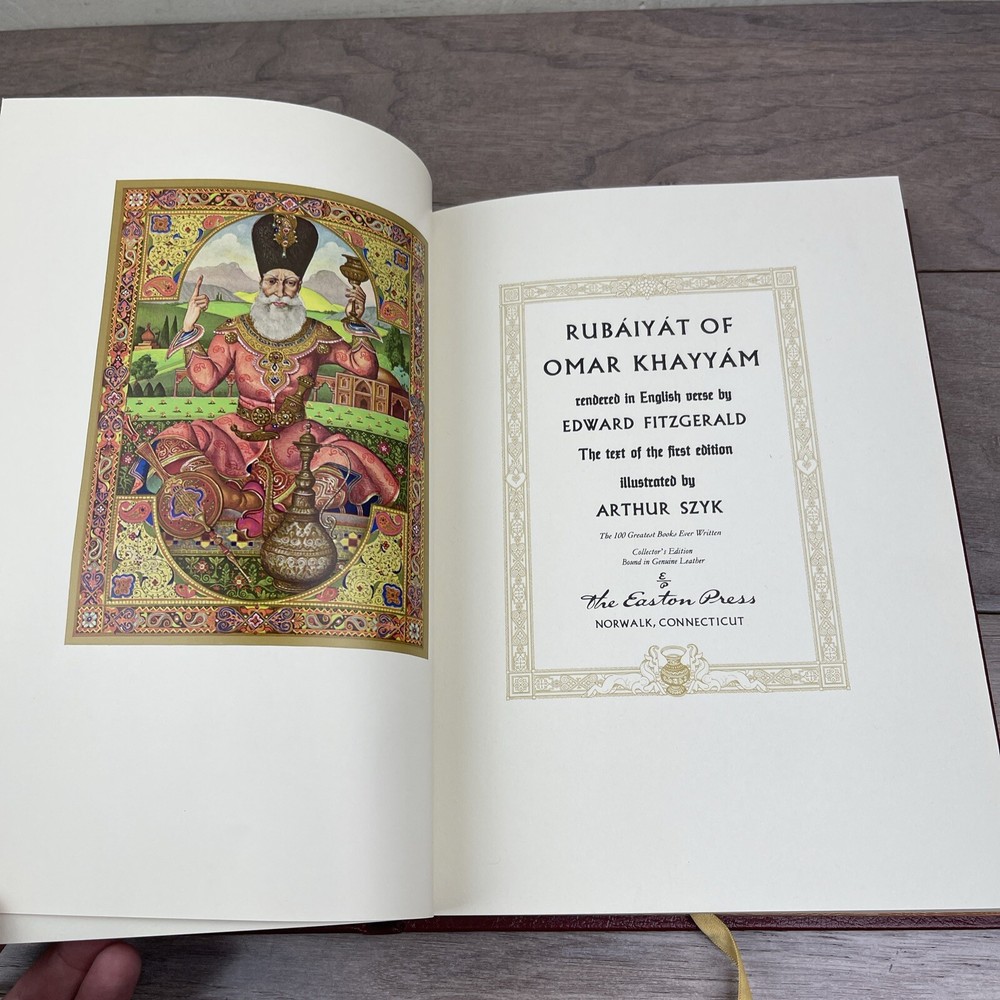 This is a rare and exquisite collector's edition of the Rubaiyat of Omar Khayyam, printed by Easton Press in 1976. The book is bound in premium leather and features stunning illustrations that bring the poetry to life. It is an original printing and written in English, making it a valuable addition to any literature or poetry collection. The book was printed in the United States and is one of the special attributes of this particular edition. This is a must-have item for any book collector or lover of poetry.