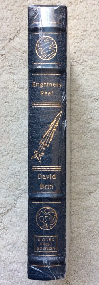 Brightness Reef by David Brin. This is Book 1 of the Uplift Trilogy. Signed by the author, with publisher's COA. Leather bound with silk ribbon bookmark bound in. Part of the Signed First Editions of Science Fiction series published by Easton Press . Limited edition with Frontispiece by Alan M. Clark. One of only 1,100 copies printed, this volume is still sealed in the publisher's shrink wrap, but is NOT sealed. It comes from a smoke free and pet free home. The unused bookplate that came with the book will be included. A beautiful book! The book you will receive is the one shown in the photos. Will ship to the U.S. only. Your choice of USPS Media Mail or USPS Priority Mail shipping. Combined shipping costs: add $1 each for books 2 to 4; $0.50 each for books 5 to 8; free for books 9+, so maximum shipping charge is $10 (media mail) or $16.99 (priority mail). All books must be paid for at the same time; you must request an invoice before sending any payment. Payment by PayPal only. Please pay within 3 business days. No refunds are accepted. Please ask if you have any questions!