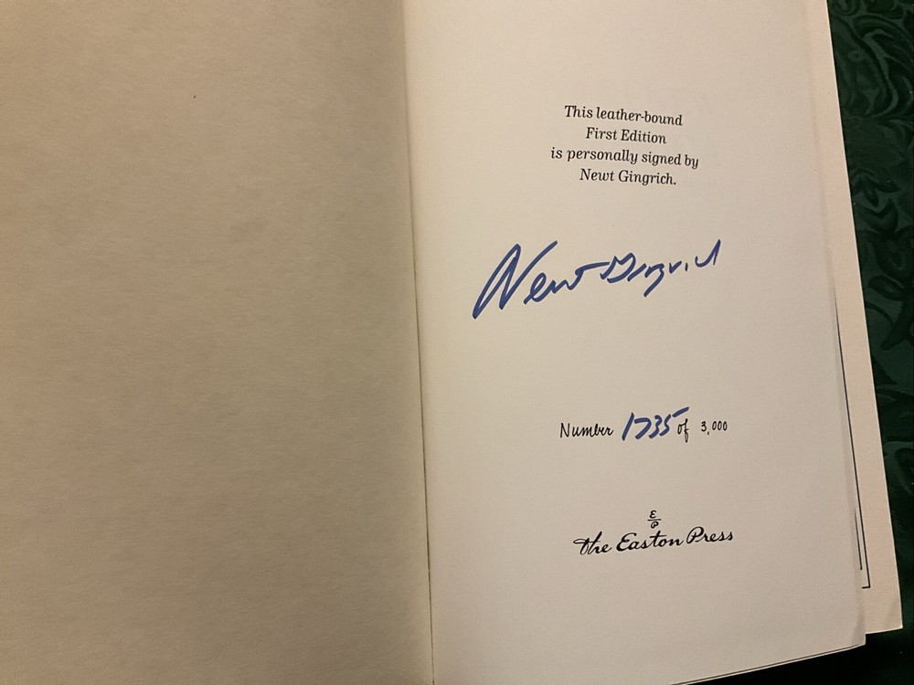 Leather bound first edition personally signed by Newt Gingrich . Number 1735 of 3000.