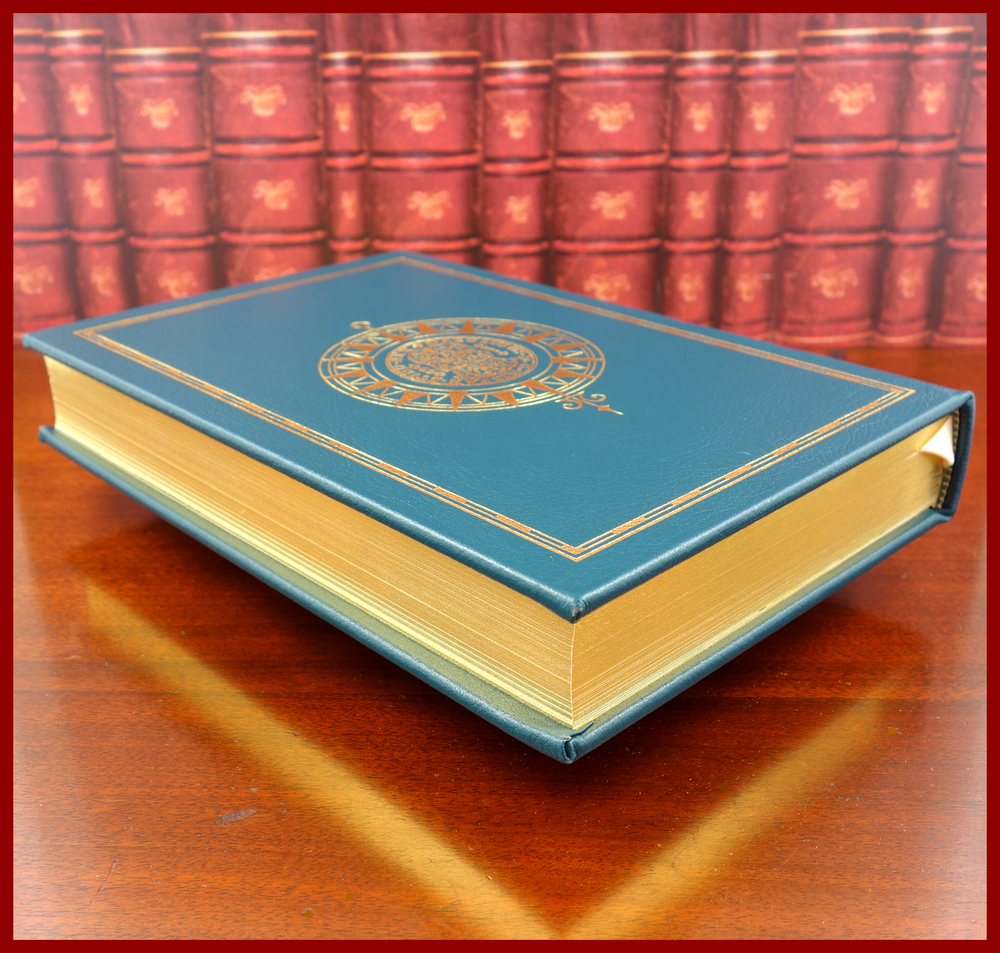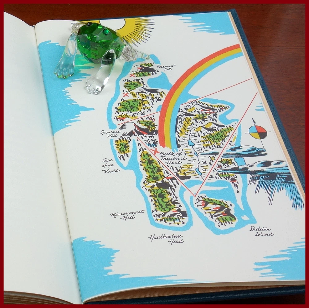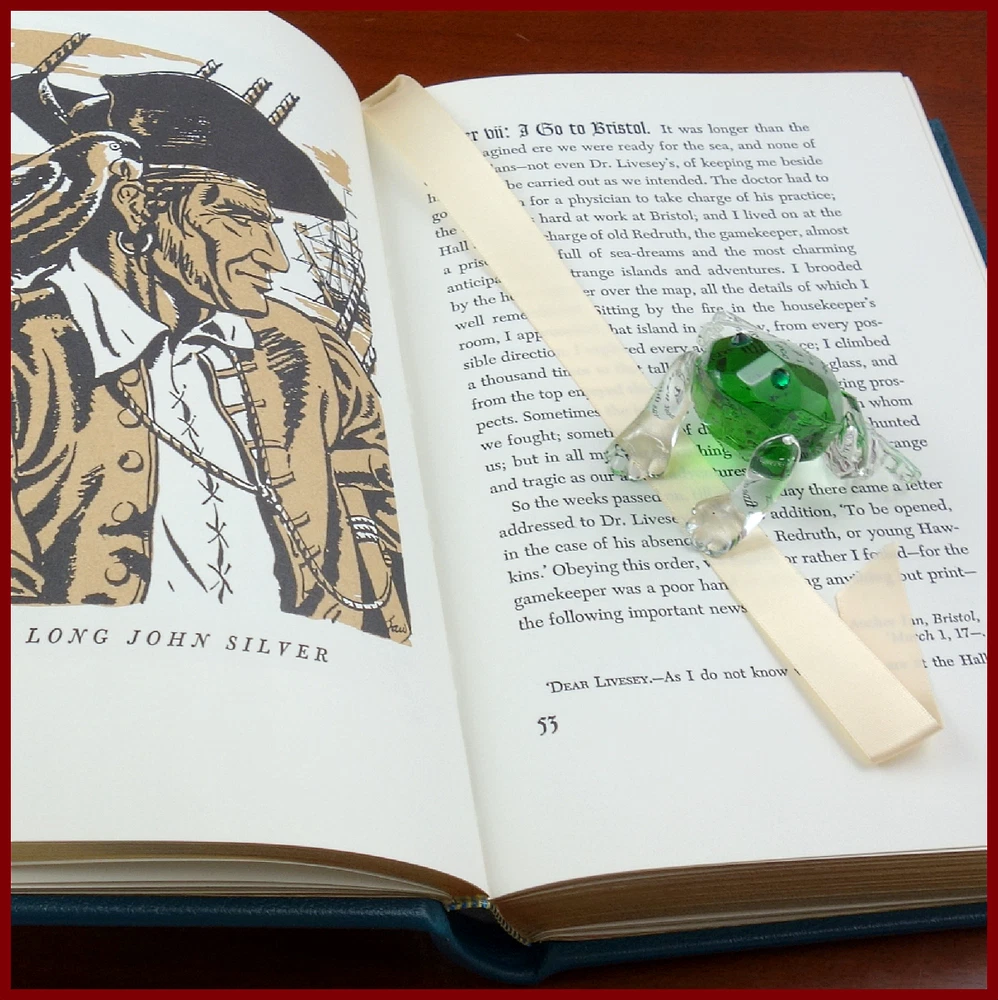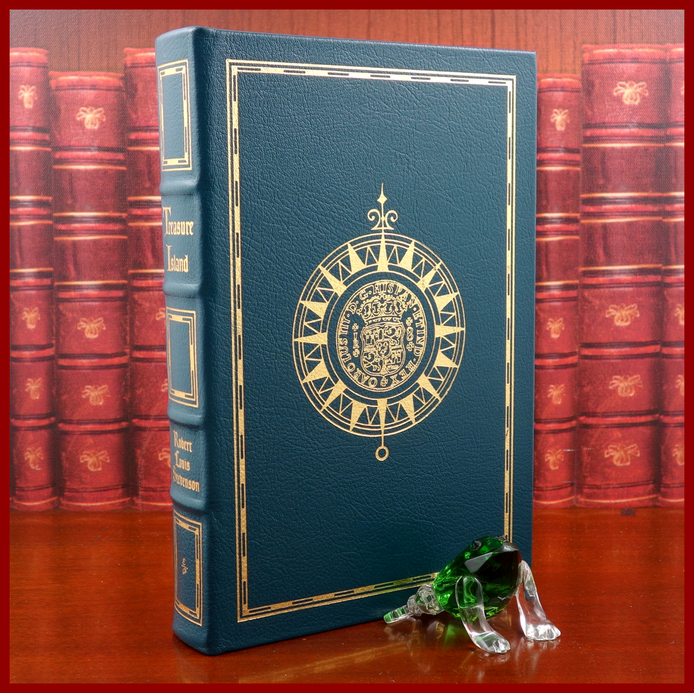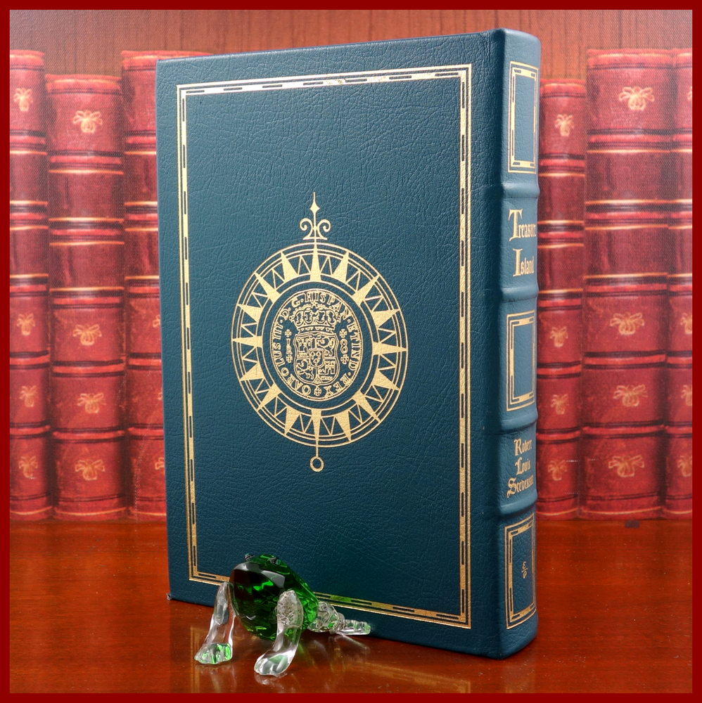 We recently purchased a large collection of Easton Press books to be listed in the coming weeks. Stay tuned for the chance to pick up some collectible titles. This text is featured in the Easton Press series: The 100 Greatest Books Ever Written . Published as a Collector's Edition in 1994, bound in handsome Jade Green leather, and strikingly illustrated by Edward A. Wilson, this edition would be a worthy addendum to your collectibles library. Specifics of this series from the Easton Press website: Fully and tightly bound in genuine leather. 22kt gold accents deeply inlaid on the "hubbed" spine. Heavy duty binding boards... . Superbly printed on acid-neutral paper... . Sewn pages – not just glued like ordinary books. ...moiré endpages and a satin-ribbon page marker. Gilded page ends. ******************************************************************************************************************* " ' Treasure Island ', published in 1883, popularized the now familiar characters of pirates and brought them to rum-swilling life. When an old sailor named Billy Bones dies in the inn belonging to young Jim Hawkins’s parents, he leaves a greasy old map on which an “X” marks the spot where treasure is buried. Jim joins the crew of a ship in pursuit of Bones’s treasure, and on the seas meets up with Long John Silver, a peg-legged pirate who has infiltrated their ranks. Jim must survive mutinies and counter-mutinies, face hand-to-hand combat with drunken sailors, and outwit double-crossing thieves before the treasure can be his." /////////////////////////////////////////////////////////////////////////////////////////////////////////////////////////////////////////////////////// Robert Louis Stevenson (born Robert Lewis Balfour Stevenson; 13 November 1850 – 3 December 1894) was a Scottish novelist, essayist, poet and travel writer. He is best known for works such as Treasure Island , Strange Case of Dr Jekyll and Mr Hyde, Kidnapped and A Child's Garden of Verses. Born and educated in Edinburgh, Stevenson suffered from serious bronchial trouble for much of his life, but continued to write prolifically and travel widely in defiance of his poor health. As a young man, he mixed in London literary circles, receiving encouragement from Andrew Lang, Edmund Gosse, Leslie Stephen and W. E. Henley, the last of whom may have provided the model for Long John Silver in Treasure Island. In 1890, he settled in Samoa where, alarmed at increasing European and American influence in the South Sea islands, his writing turned away from romance and adventure fiction toward a darker realism. He died of a stroke in his island home in 1894 at age 44. A celebrity in his lifetime, Stevenson's critical reputation has fluctuated since his death, though today his works are held in general acclaim. In 2018, he was ranked, just behind Charles Dickens, as the 26th-most-translated author in the world. The above text derives from, respectively, Cassell Publishers (via Google Books) and Wikipedia. [Stevenson, Robert Louis. Treasure Island. United Kingdom: Cassell, 1883.]
