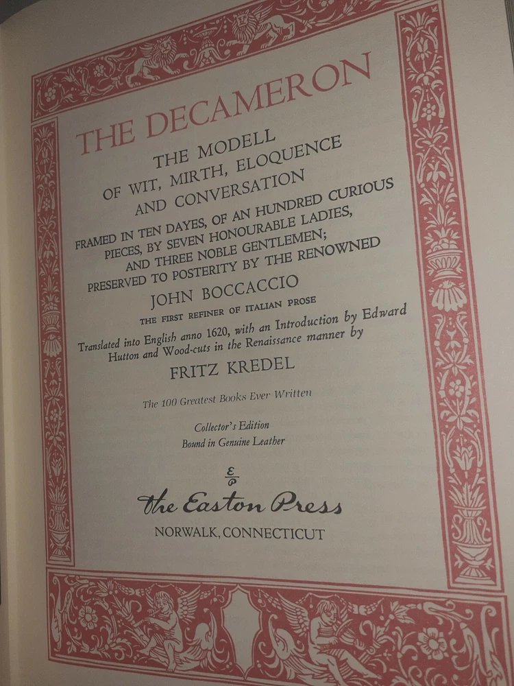 This beautiful edition of The Decameron by Boccaccio is a must-have for any collector of fine literature. The book features exquisite leather binding and is in pristine condition, making it a rare find for those who appreciate the finer things in life. The luxury edition, published by Easton Press in 1980, is made even more special by its unread status, ensuring that the pages are crisp and clean. The subject matter of the book, which explores love, lust, and human nature through storytelling, makes it a timeless classic that will remain relevant for generations to come. Don't miss your chance to add this masterpiece to your collection.
