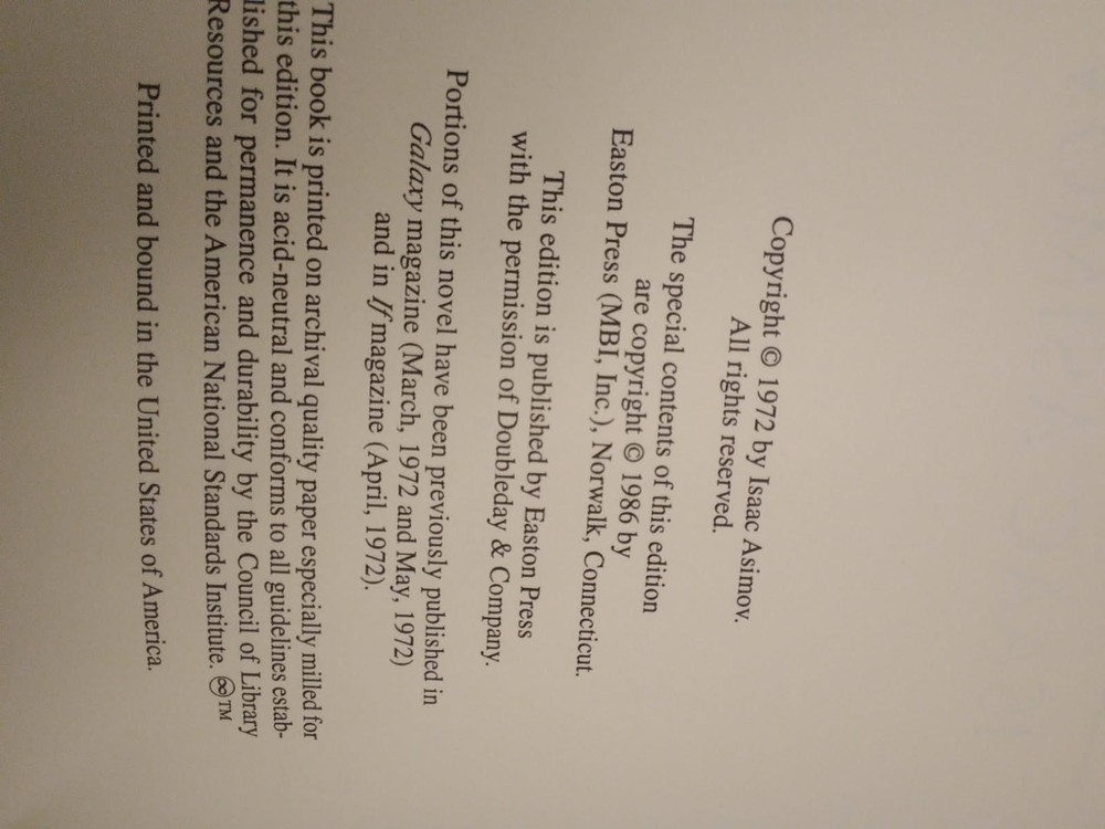 Classic Isaac Asimov. Seminal work as a masterpiece of science fiction. Published by Easton Press great collectible and resale value....