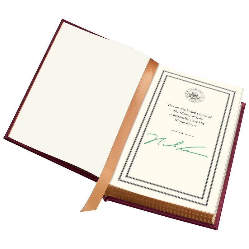 Up for bids today is a beautiful, limited edition signed copy of "The History of Love" by Nicole Krauss. This particular book is sold out and no longer available. The scans are from the Easton Press website. The actual book you are bidding on is brand-new, still in the original shrink wrap. It measures 5 1/2” x 8 1/3” and is 272 pages. P er the Easton Press website, features include: Signed by Nicole Krauss. Fully bound in genuine leather. 22kt gold deeply inlaid on the “hubbed” spine. Superbly printed on acid-neutral paper that lasts for generations. Sewn pages – not just glued like ordinary books. Satin-ribbon page marker. Gilded page ends. Bound in the USA. Imported materials. Rigorous inspection at every stage ensures adherence to our exacting standards. Superb craftsmanship and commitment to quality. The winning bidder will pay $7.00 for USPS Media Mail shipping with full insurance. Payment is due within 3 days of the auction's end. Due to my work schedule, I am only able to ship on Fridays and Saturdays - please do not bid if you are not OK with this! If you have any questions, please do not hesitate to contact me. Please see my other auctions for many more signed Easton Press books and combine shipping costs!