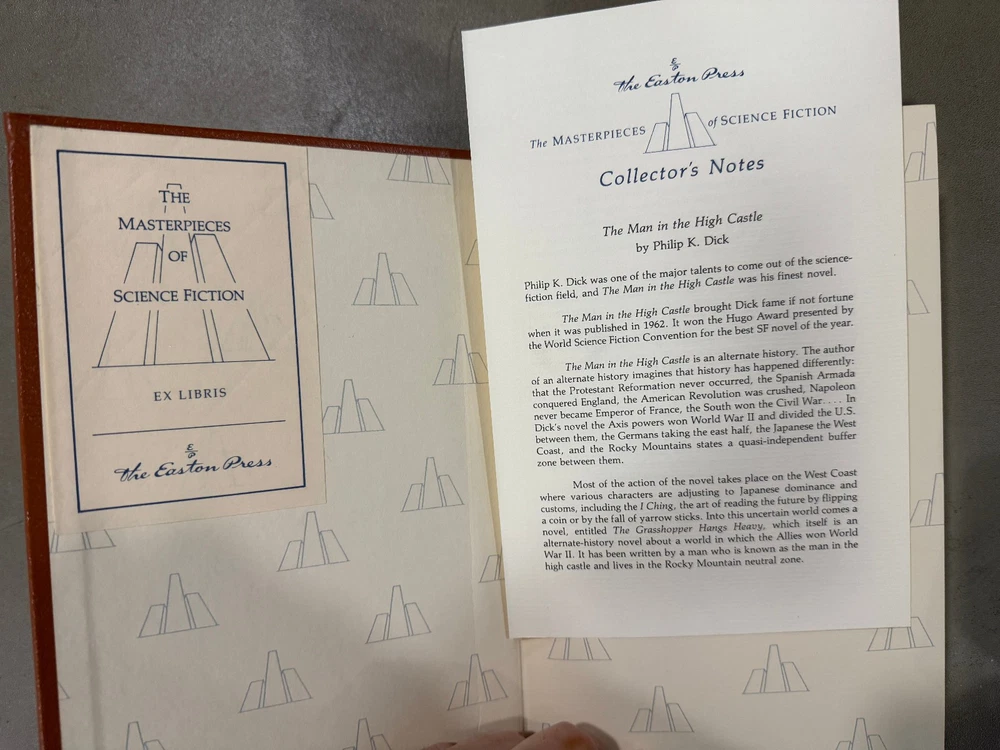 The Man in the High Castle by Philip K. Dick Easton Press 1st Edition Science Fiction Excellent Condition with Collectors Notes and attached NEW Bookplate ! New Books get listed daily !!! 100s of Easton Press and Franklin Library books available!! All books get cleaned with a leather cleaner to remove any dust, odor and restore the beauty of leather!! Combined Shipping Discount: USA buyers - every book $1 off International combined shipping: 1 or 2 books - $45 3 or 4 books - $75 5 + books $17 per book 10+ books $13 per book WE SHIP DAILY!! RETURNS: Hassle-Free 30-days return policy and we pay for a return !! Check our Inventory (Link to eBay Store): http://stores.ebay.com/EastonFranklinBook