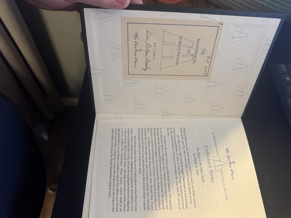 Immerse yourself in the dystopian world of Philip K. Dick's "The Man in the High Castle" with this exquisite collector's edition from Easton Press. This first edition leather-bound book is a treasure for any science fiction enthusiast or literature lover. The book is in English and was printed in 1995 in the United States. The special attributes of this book include being a collector's edition and a first edition. The book is part of the science fiction series and the topic is literature and fiction. Add this rare gem to your collection today.