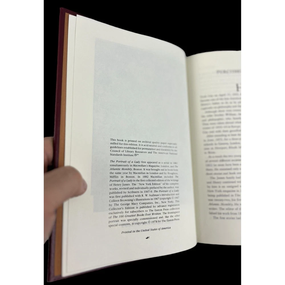 Easton Press The Portrait of a Lady Henry James 100 Greatest Books Ever 1978 Excellent Condition! Looks like never been used. Tight binding, excellent gold. A nice addition. Original owner signed her signature on the outer cover - please see last picture for details. Please see the pictures for further details. Shipping: $6.99 Thanks for looking