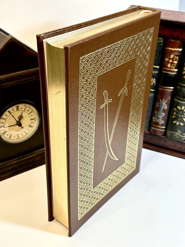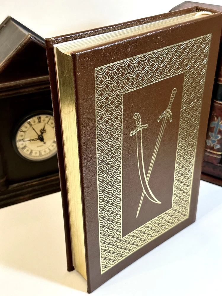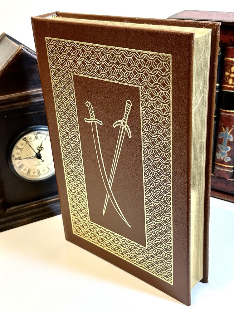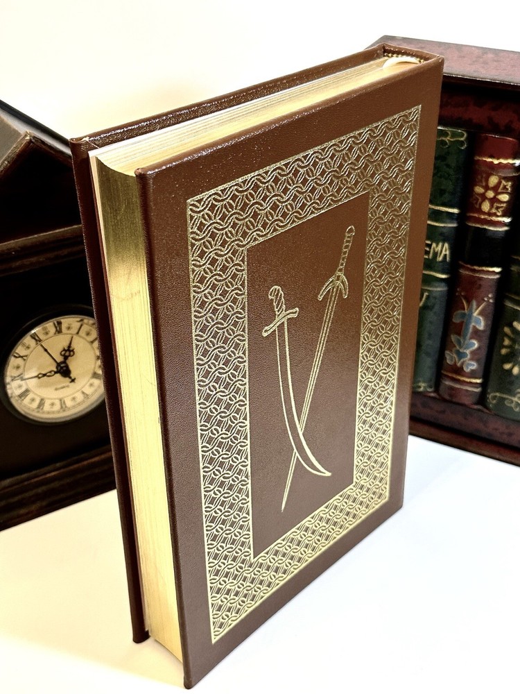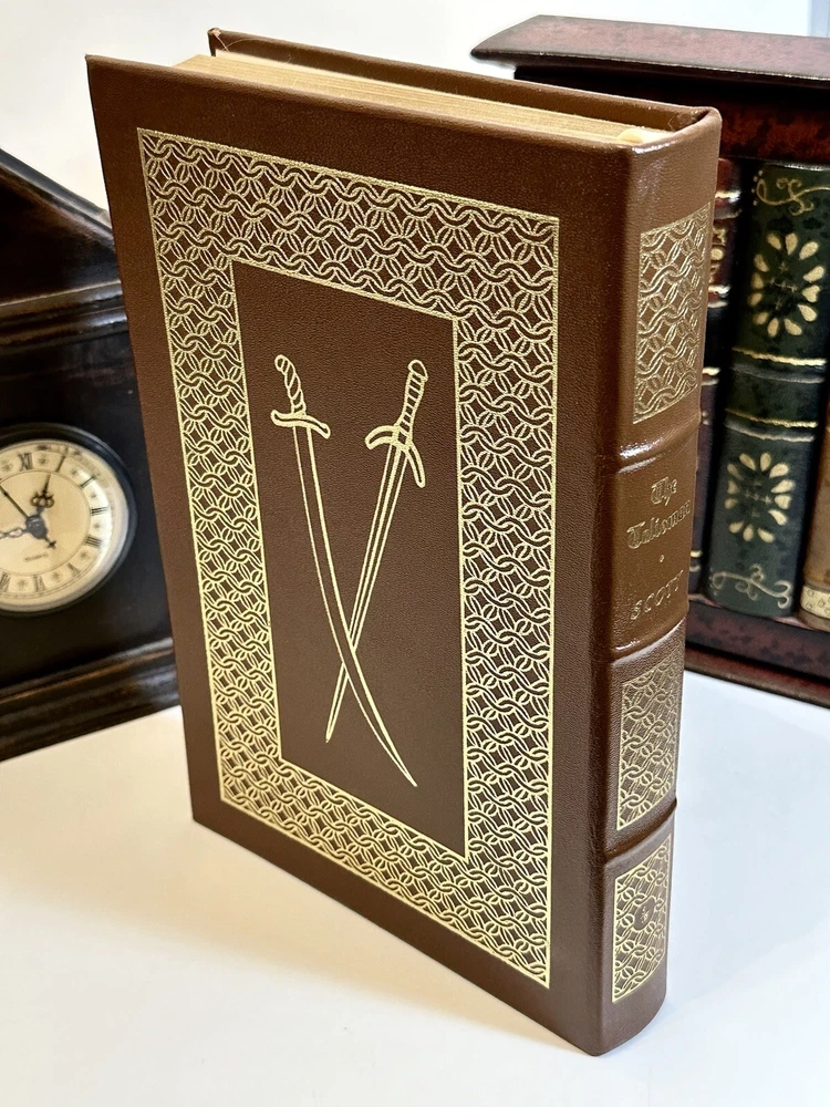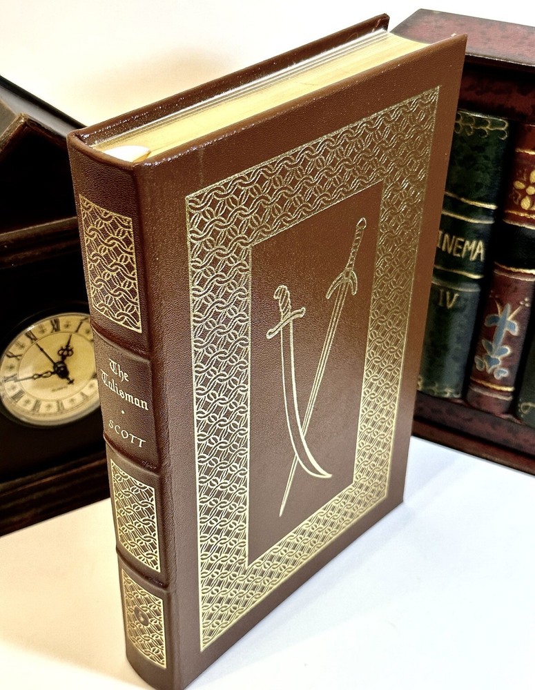 The book is in excellent condition and appears unread. Bound in genuine leather, a rich fine-grained brown with elaborate 22kt gold design on spine and covers, all edges gilt, ribbon place marker This collector's edition of "The Talisman" by Sir Walter Scott, published by Easton Press in 1976. The book features a luxurious leather binding with gilt lettering and page edges, making it an excellent addition to any literature collection. The story follows the adventures of a knight during the Crusades and is written in English. It is a must-read for anyone interested in literature and fiction. This book is a valuable piece for any antiquarian and collector. The book is part of an estate . Used primarily for display. If you need more pics or have questions please feel free to message Thank you for looking
