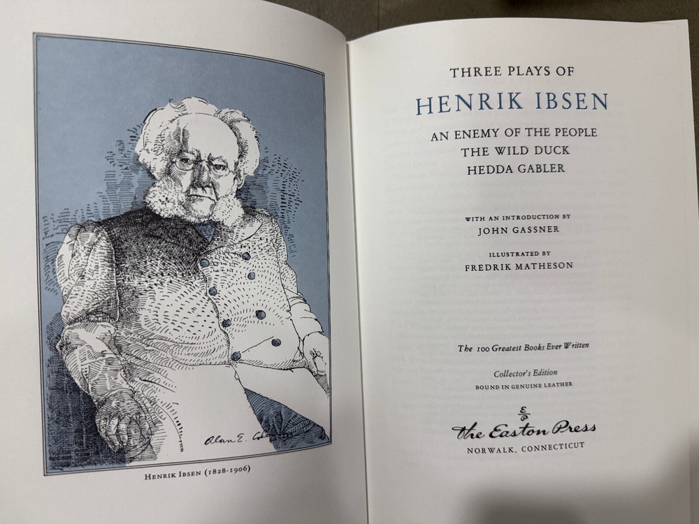 This Easton Press edition of *Three Plays by Henrik Ibsen* is absolutely stunning—the leather binding is luxurious, and the craftsmanship is top-notch. The seller takes great care in cleaning and preserving each book, ensuring it arrives in pristine condition. Plus, their combined shipping discounts and daily listings make it easy to build a beautiful collection. A must-have for any serious bibliophile!