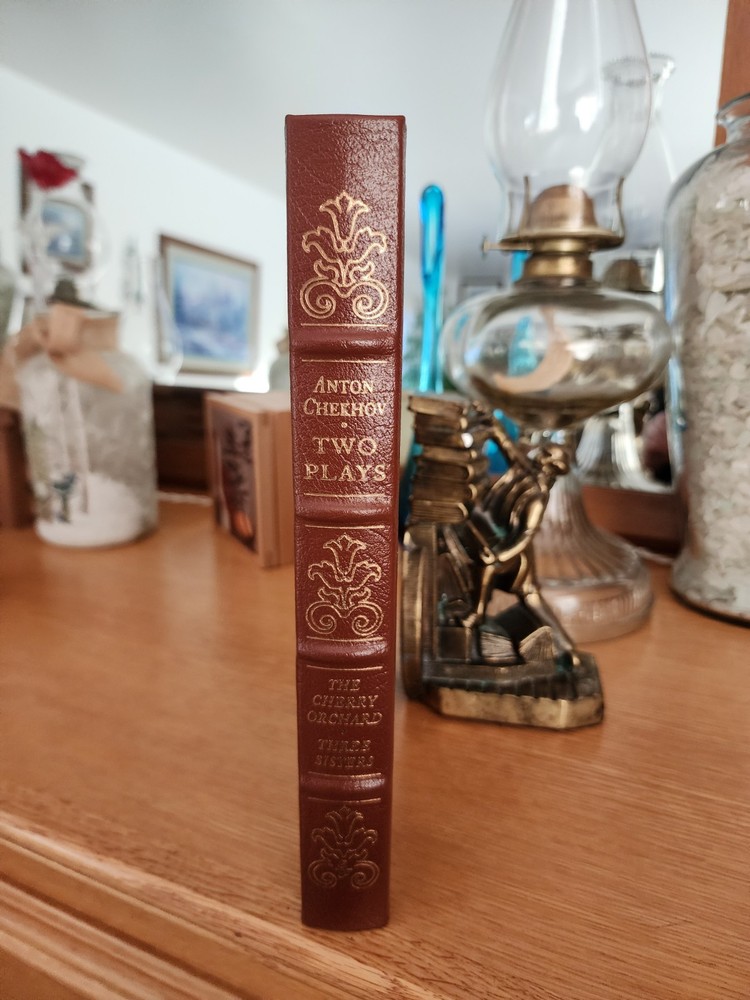 The product is a collector's edition published by Easton Press featuring two plays by Anton Chekhov: "The Cherry Orchard" and "Three Sisters." The book is bound in leather, making it a luxurious addition to any literature enthusiast's collection. As a work of literature and fiction, this edition offers readers the opportunity to delve into Chekhov's timeless and thought-provoking plays in a high-quality and aesthetically pleasing format.