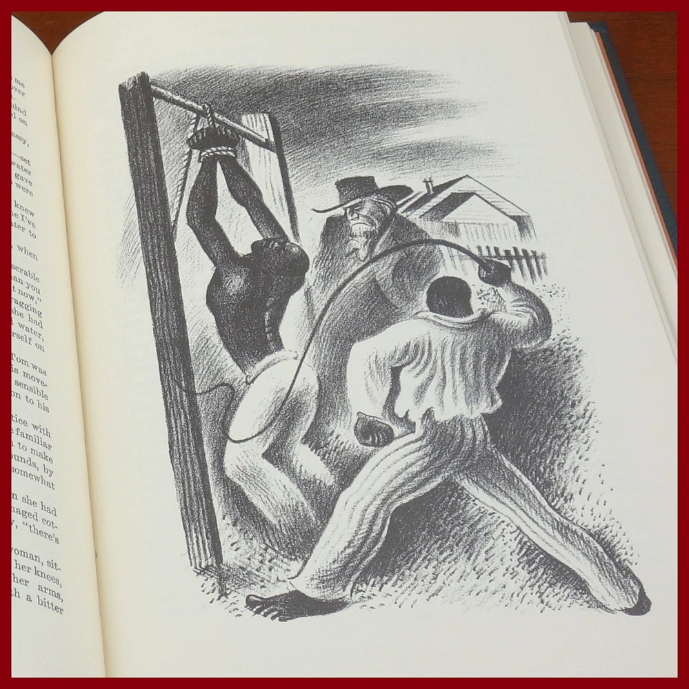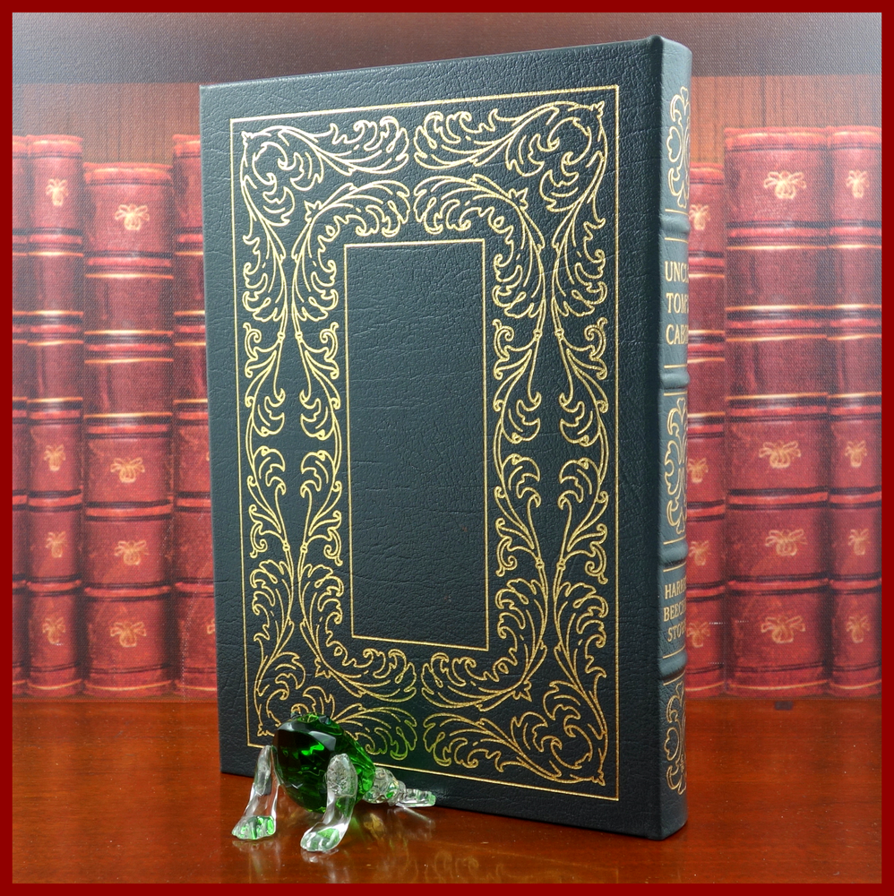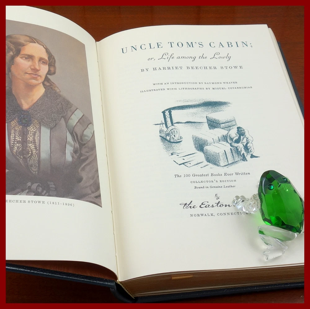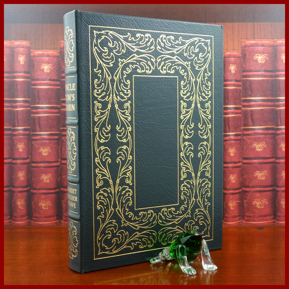 We recently purchased a large collection of Easton Press books to be listed in the coming weeks. Stay tuned for the chance to pick up some collectible titles. This text is featured in the Easton Press series: The 100 Greatest Books Ever Written . Published as a Collector's Edition in 1979, bound in handsome Grey leather, and strikingly illustrated by Miguel Covarubbias, this edition would be a worthy addendum to your collectibles library. Specifics of this series from the Easton Press website: Fully and tightly bound in genuine leather. 22kt gold accents deeply inlaid on the "hubbed" spine. Heavy duty binding boards... . Superbly printed on acid-neutral paper... . Sewn pages – not just glued like ordinary books. ...moiré endpages and a satin-ribbon page marker. Gilded page ends. ******************************************************************************************************************* "The novel that changed the course of American history Published in 1852, Harriet Beecher Stowe’s novel was a powerful indictment of slavery in America. Describing the many trials and eventual escape to freedom of the long-suffering, good-hearted slave Uncle Tom, it aimed to show how Christian love can overcome any human cruelty. Uncle Tom’s Cabin has remained controversial to this day, seen as either a vital milestone in the anti-slavery cause or as a patronising stereotype of African-Americans, yet it played a crucial role in the eventual abolition of slavery and remains one of the most important American novels ever written." /////////////////////////////////////////////////////////////////////////////////////////////////////////////////////////////////////////////////////// Harriet Elisabeth Beecher Stowe ( . . . June 14, 1811 – July 1, 1896) was an American author and abolitionist. She came from the religious Beecher family and became best known for her novel Uncle Tom's Cabin (1852), which depicts the harsh conditions experienced by enslaved African Americans. The book reached an audience of millions as a novel and play, and became influential in the United States and in Great Britain, energizing anti-slavery forces in the American North, while provoking widespread anger in the South. Stowe wrote 30 books, including novels, three travel memoirs, and collections of articles and letters. She was influential both for her writings as well as for her public stances and debates on social issues of the day. . . . In June 1851, when she was 40, the first installment of Uncle Tom's Cabin was published in serial form in the newspaper The National Era. She originally used the subtitle "The Man That Was a Thing", but it was soon changed to "Life Among the Lowly". Installments were published weekly from June 5, 1851, to April 1, 1852. For the newspaper serialization of her novel, Stowe was paid $400. Uncle Tom's Cabin was published in book form on March 20, 1852, by John P. Jewett with an initial print run of 5,000 copies. Each of its two volumes included three illustrations and a title-page designed by Hammatt Billings. In less than a year, the book sold an unprecedented 300,000 copies. . . . The above text was taken from, respectively, Penguin publishing (via Google Books) and Wikipedia. [Stowe, Harriet Beecher. Uncle Tom's Cabin: Or, Life Among the Lowly. Kiribati: Penguin Publishing Group, 1981.]