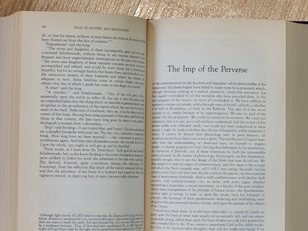 Edgar Allan Poe - The Complete Tales of Mystery and Imagination. Bonded Leather. Minor shelf wear and some yellowing of pages at the top and side (see photos). Spine/binding fully intact with sharp page corners. Ships quickly and for free via USPS Media Mail.