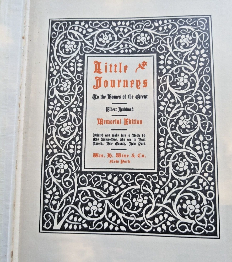 This beautifully illustrated book, titled "To The Homes of The Great", is a rare gem for collectors of historical literature. Published in 1917 by Wm. H. Wise & Co. in New York, it is an original first edition from The Roycrofters. The binding is made of leather, which adds to its vintage charm. The book covers various topics, including history and biographical accounts of great personalities. The book is in good shape and has been well-preserved over the years. It is a wonderful addition to any book collection and would make a thoughtful gift. This book is not personalized and is unsigned. It is a must-have for any avid collector of rare and antique books. It has some fading to the leather on back. A small tear as shown to the leather in front. There is some cracking as shown after 2nd page. All is bound tight. Memorial Edition Volume IX inv 9