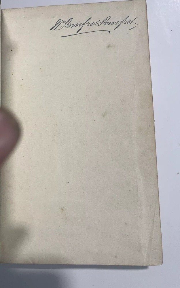well-packaged, quickly shipped, everything accurate to the description and photos -- thank you very much. also ... the seller may think this odd, but i find this book particularly beautiful; not in spite of the damage, or the clumsy rebinding, or the writing added to its pages, but because of these things. it's a book that says more about its former owner than its author or printer, and i find that fascinating.
