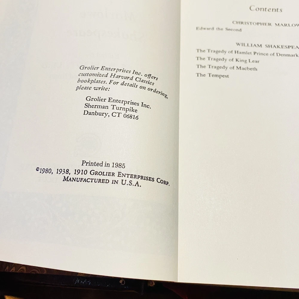 Elizabethan Drama MARLOWE / SHAKESPEARE Harvard Classics Delux Leather Cover.